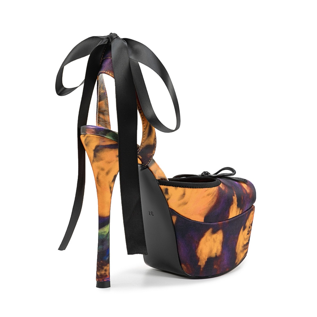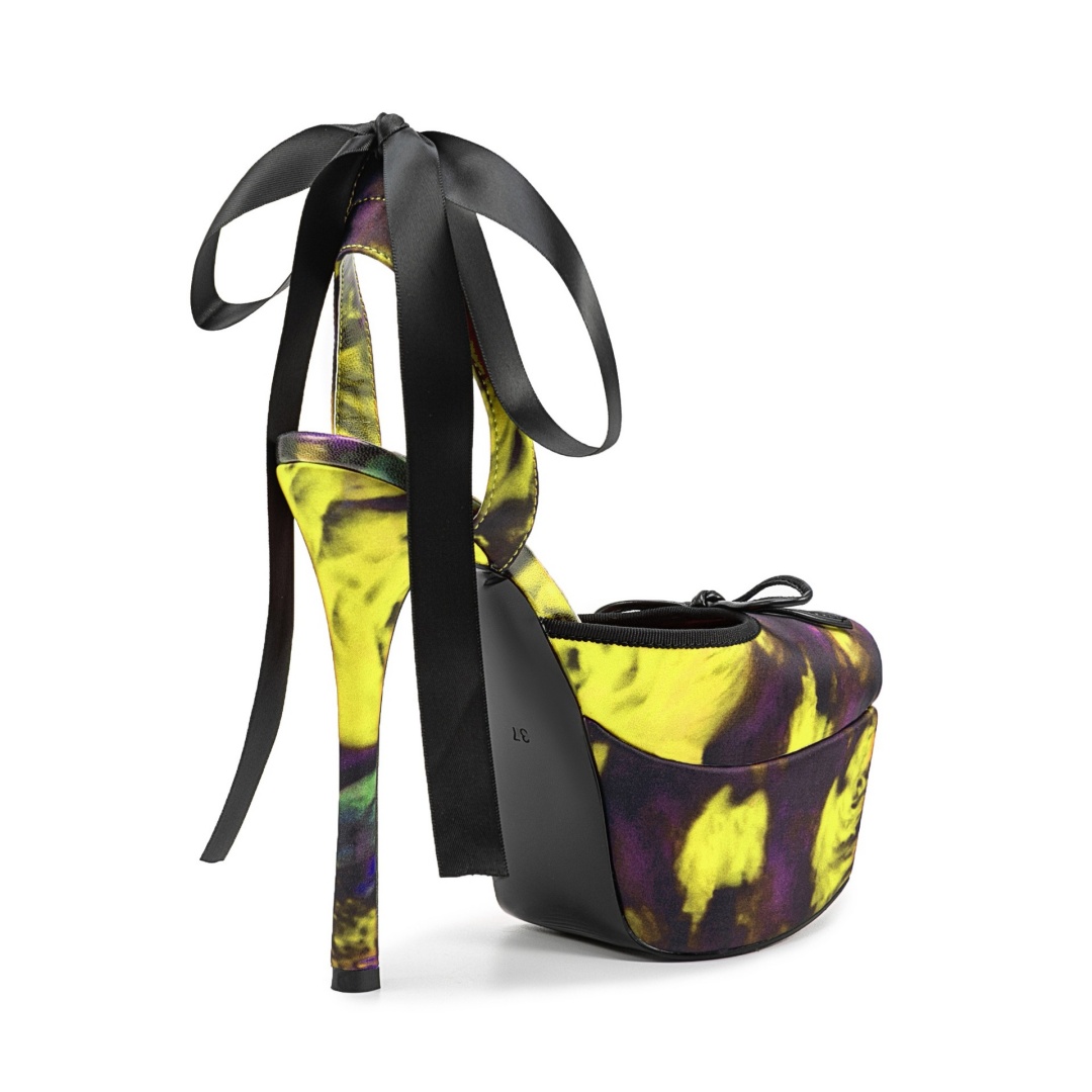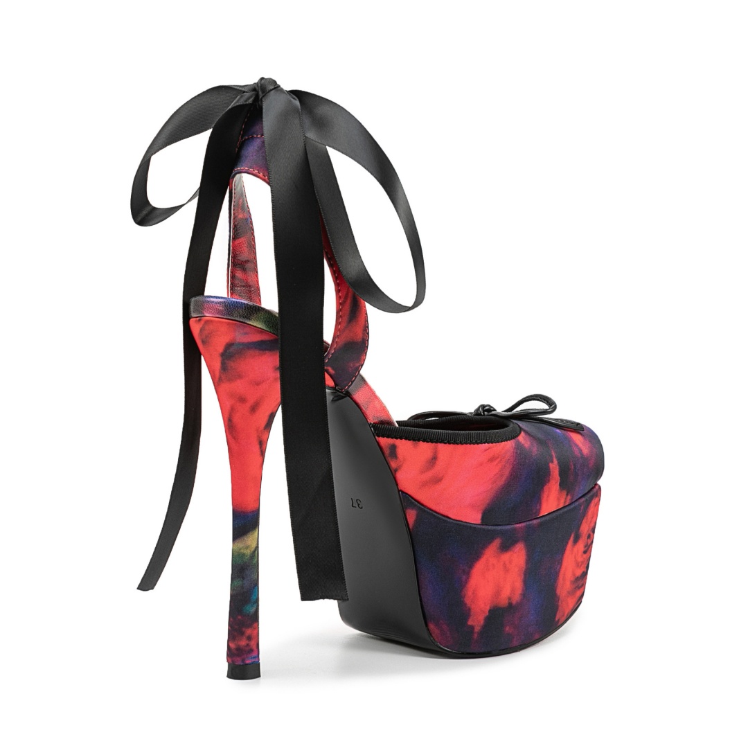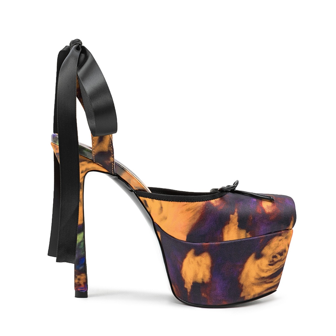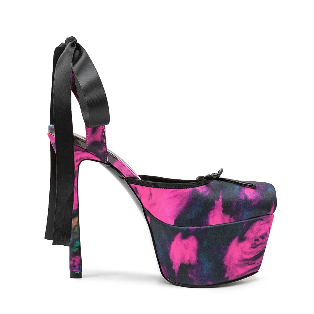 Yilu_High-quality platform ballet flats with square toe, waterproof platform, satin ribbon cross-straps and bow decoration