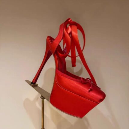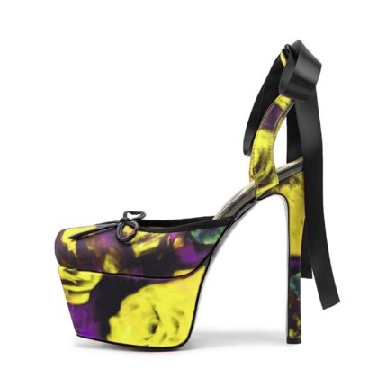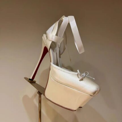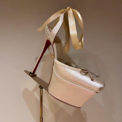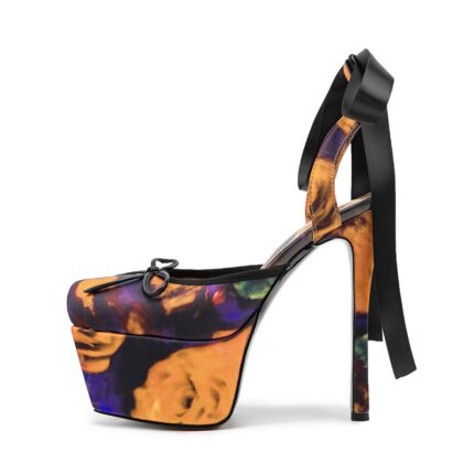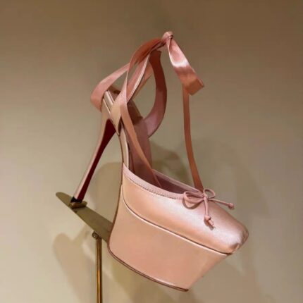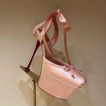 Yilu_High-quality platform ballet flats with square toe, waterproof platform, satin ribbon cross-straps and bow decoration