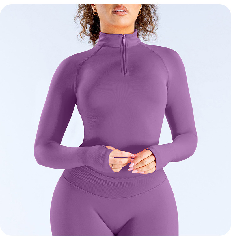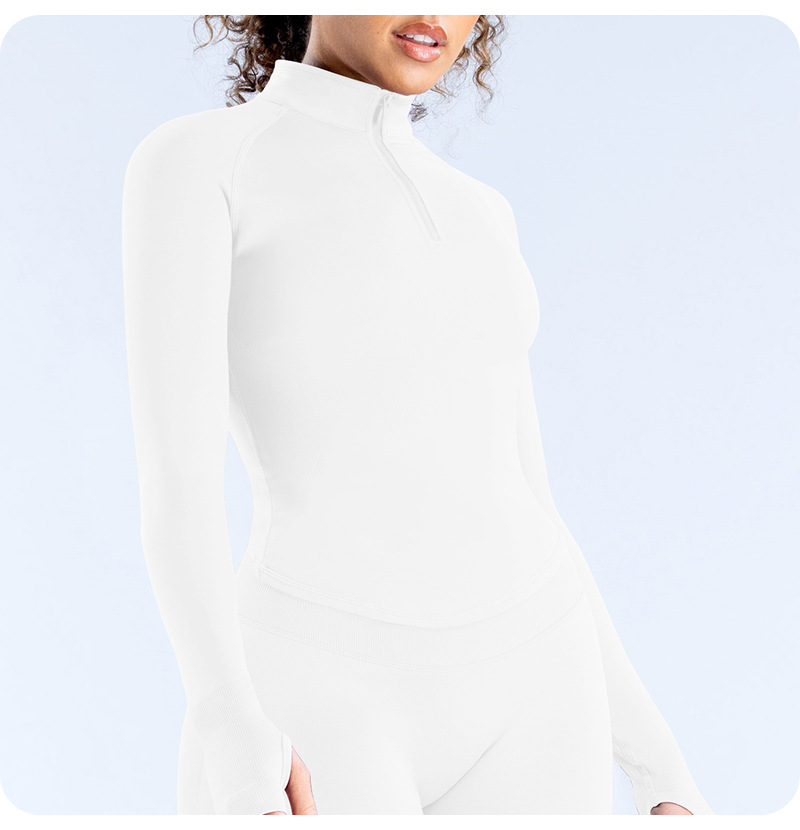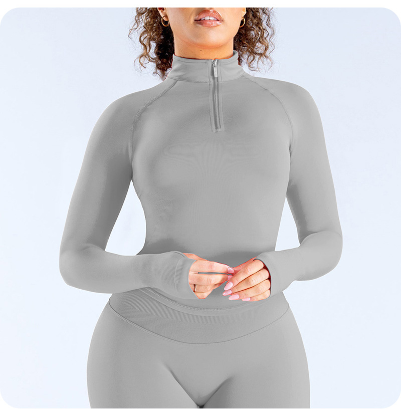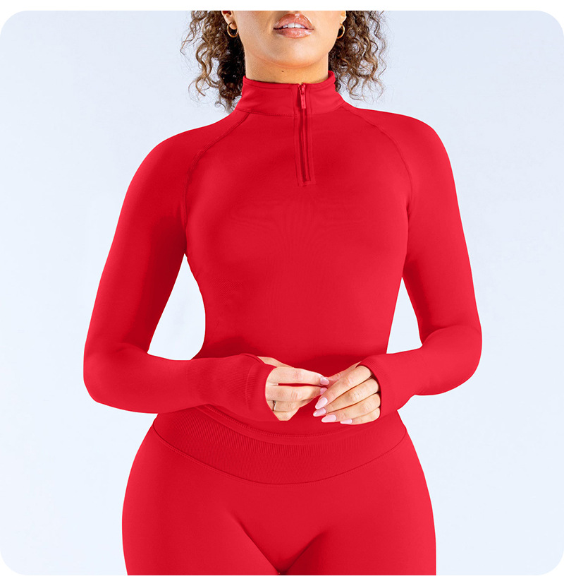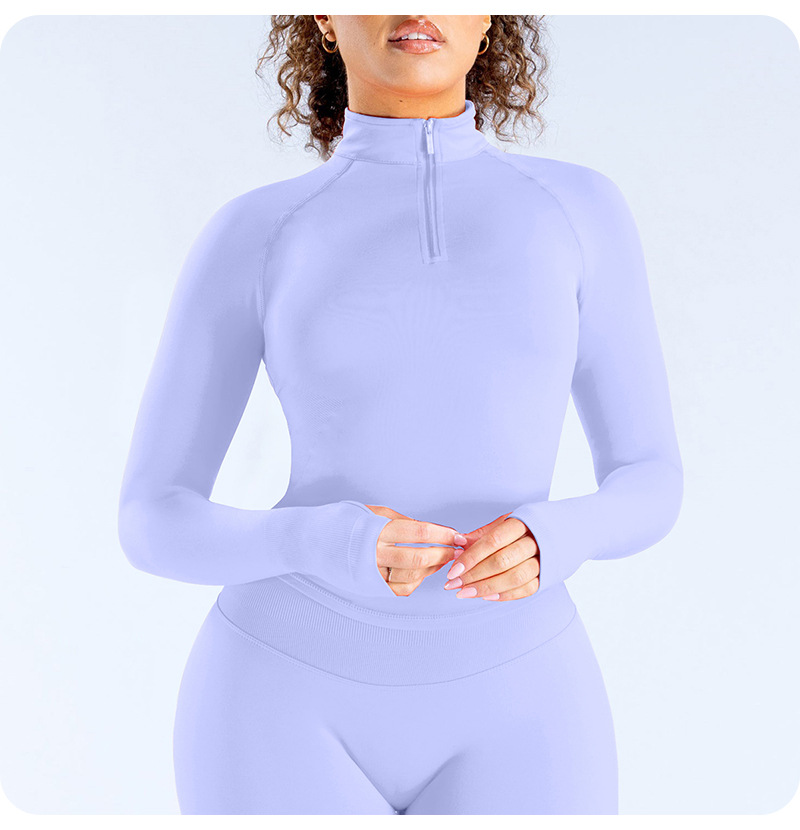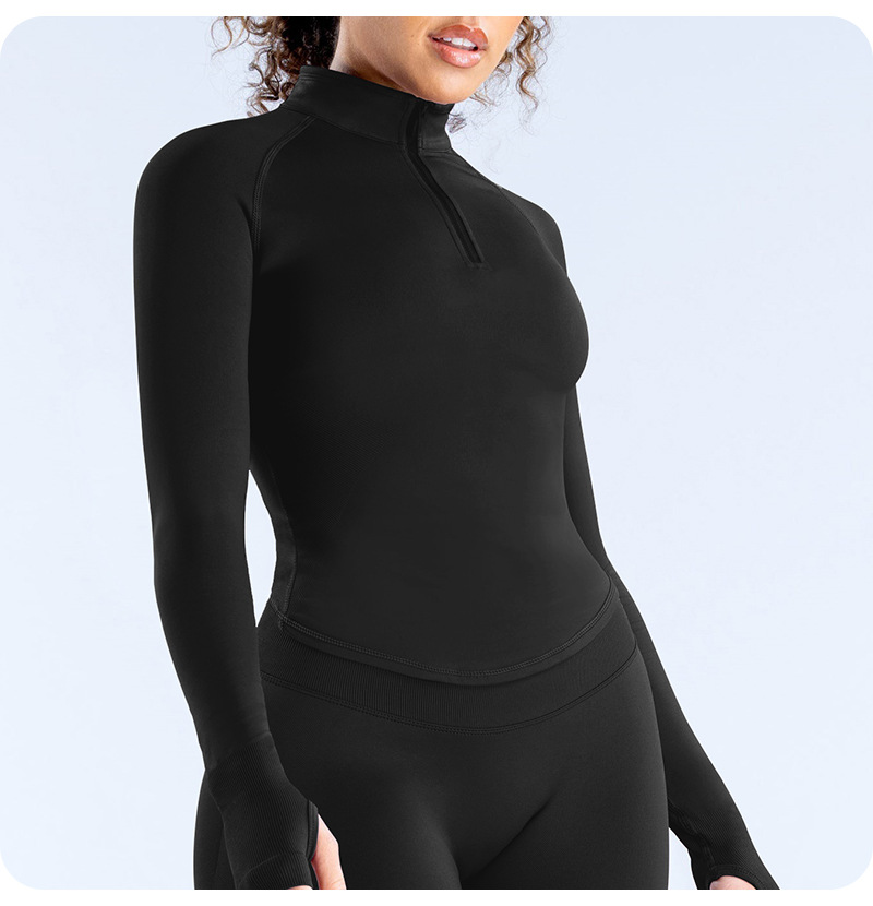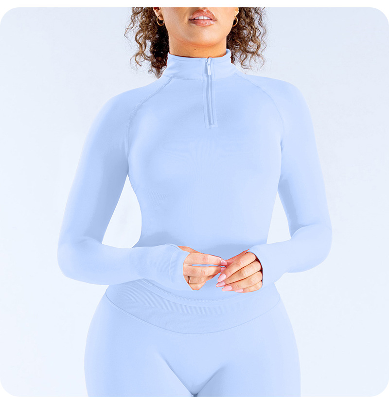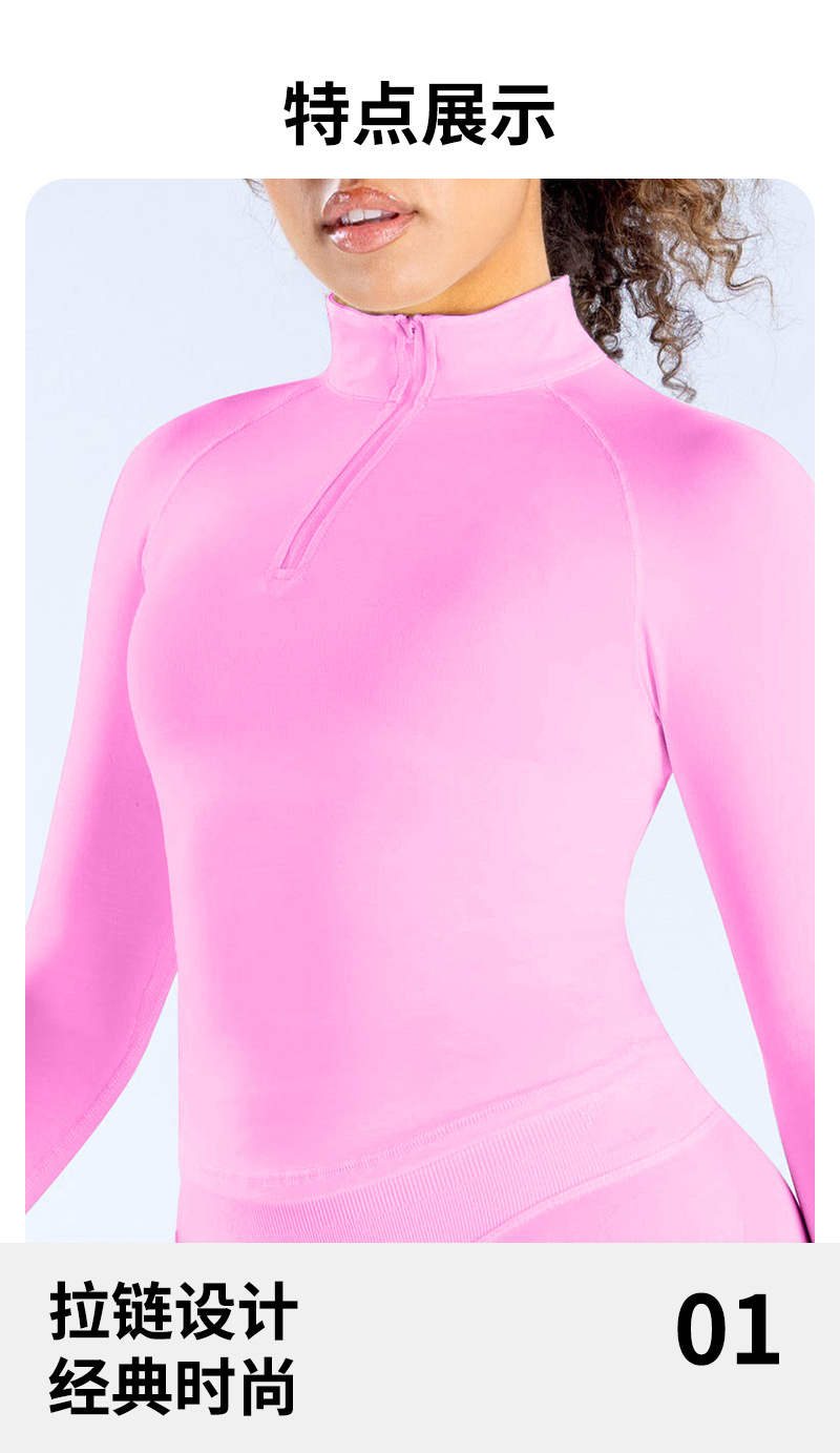 High-quality quick-drying fitness yoga top with cross-border half-zip, outdoor stand-up collar, short style, sheer feeling yoga suit for women