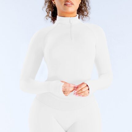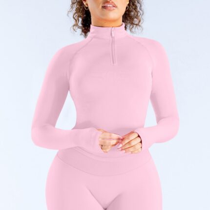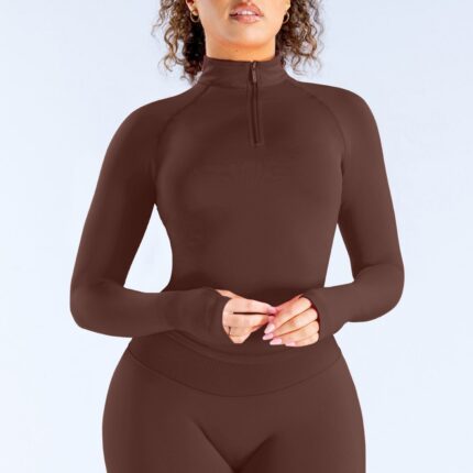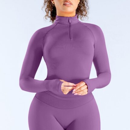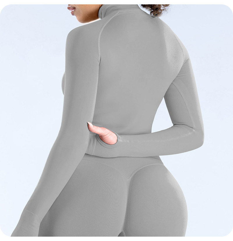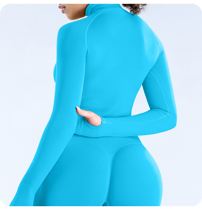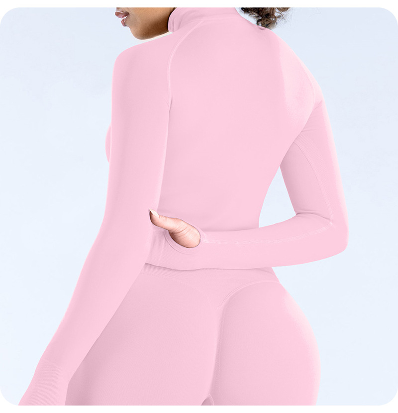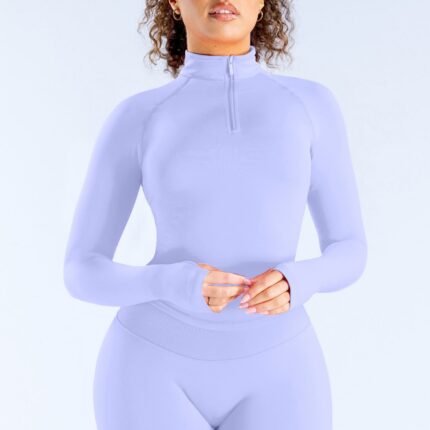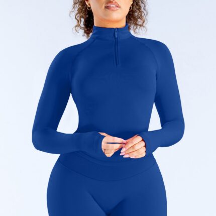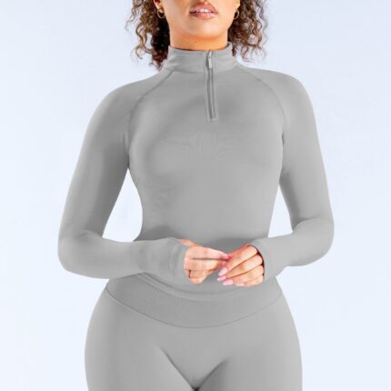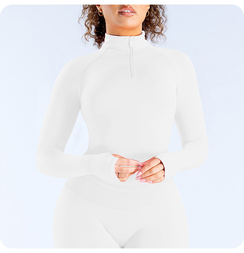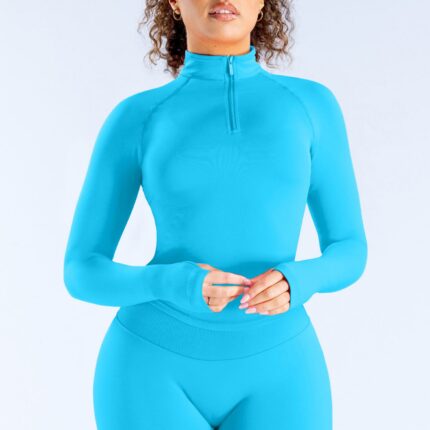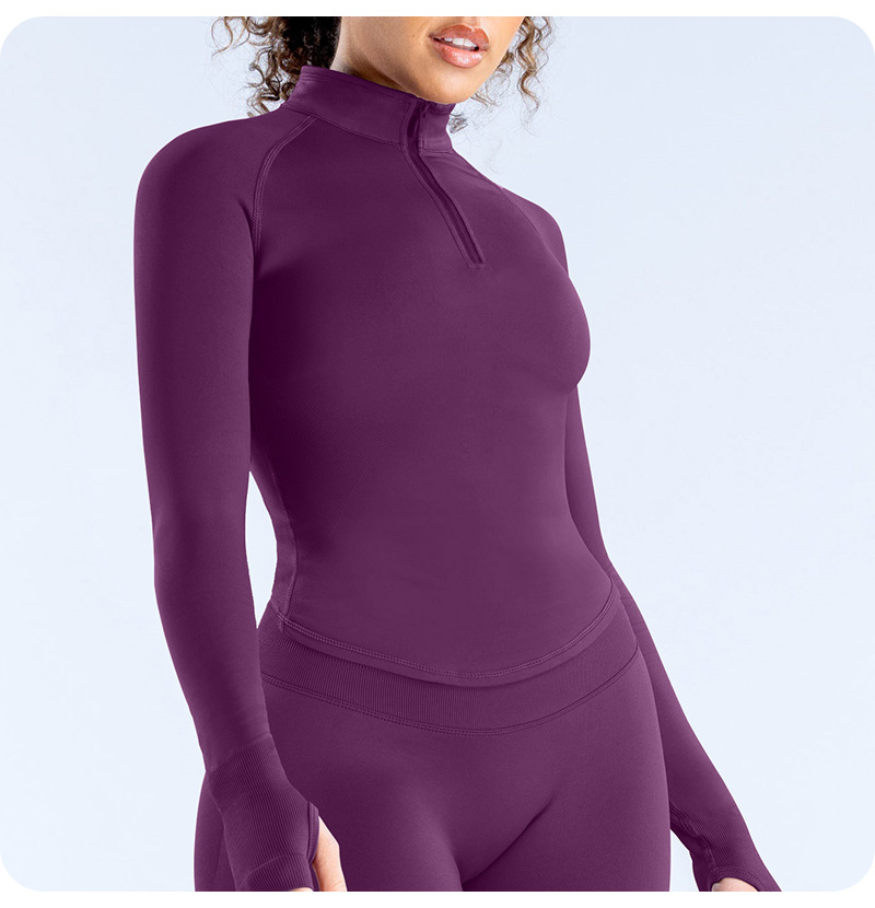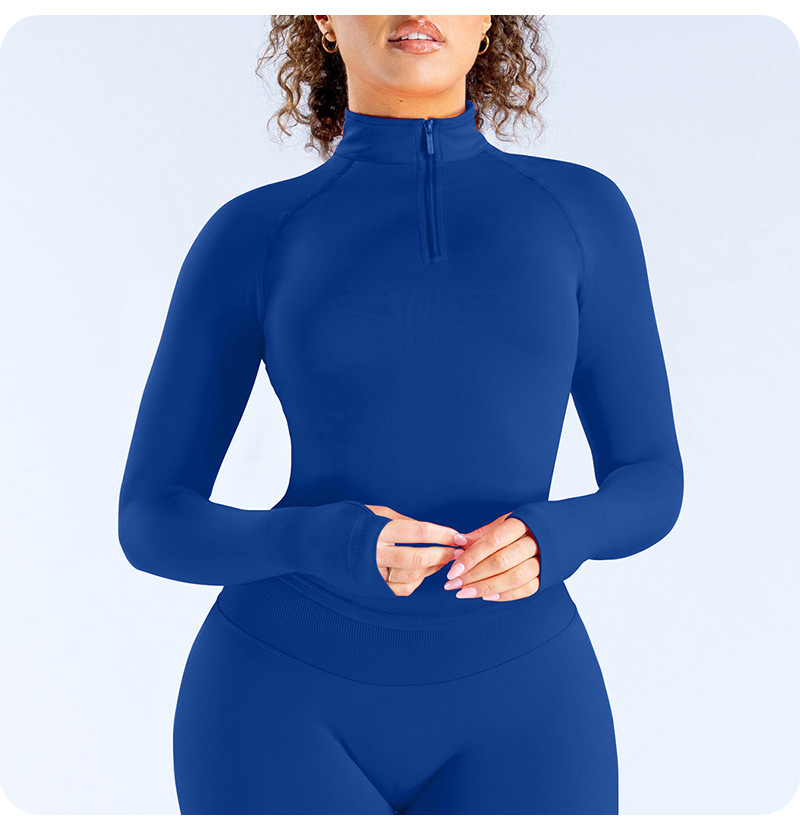 High-quality quick-drying fitness yoga top with cross-border half-zip, outdoor stand-up collar, short style, sheer feeling yoga suit for women