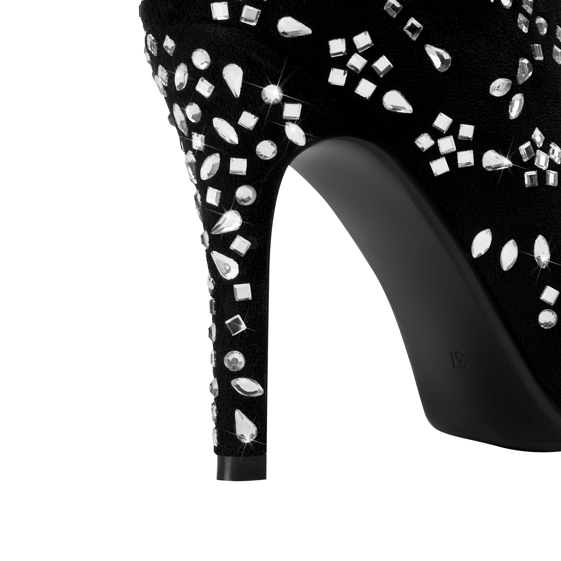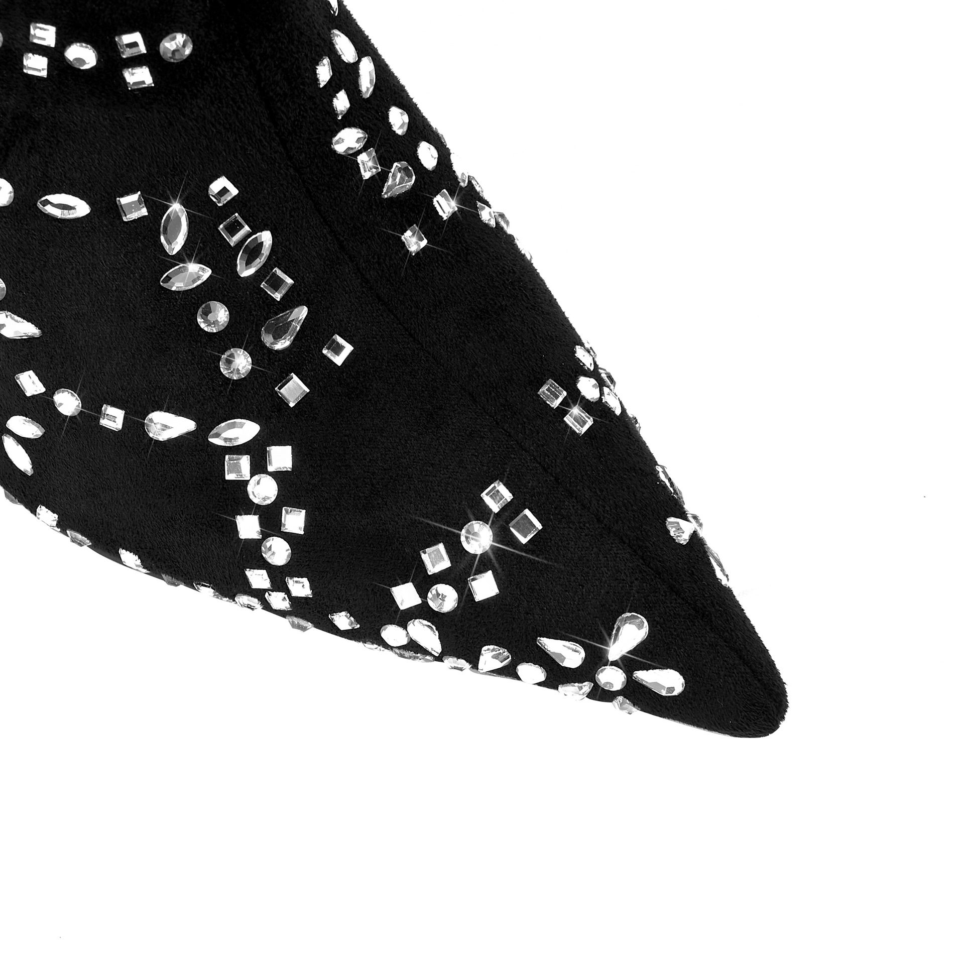 Yilu_High-quality rhinestone pointed side zipper ankle boots with a slim and tall design, suitable for export, fashionable large-size fashion boots.