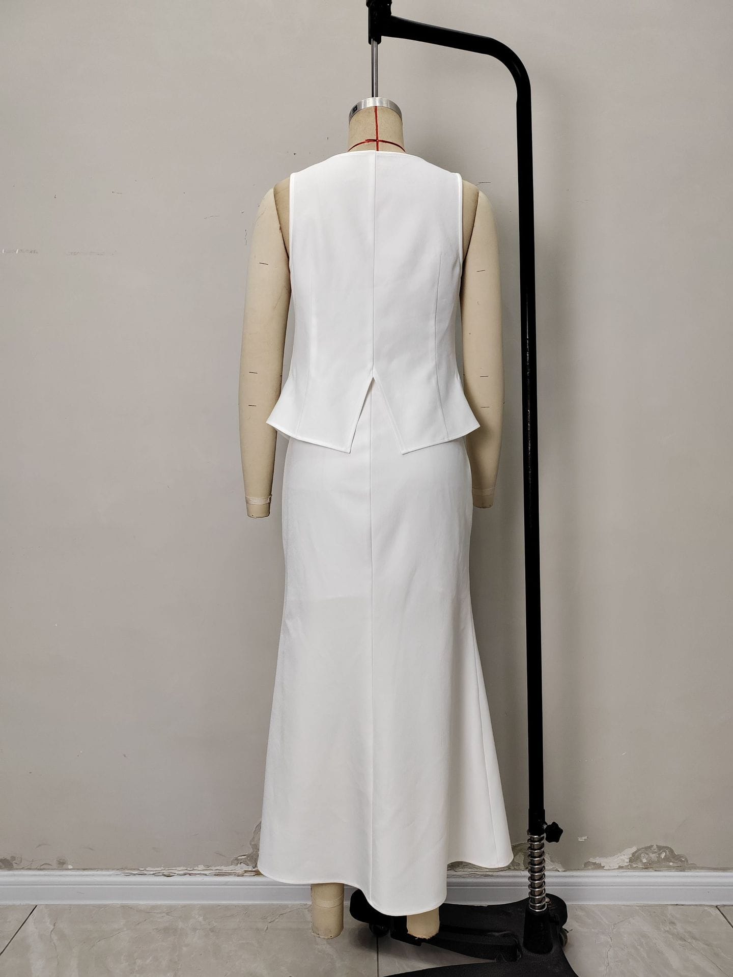 Yilu_High-quality round-neck solid-color mid-length skirt set with elegant and fashionable style
