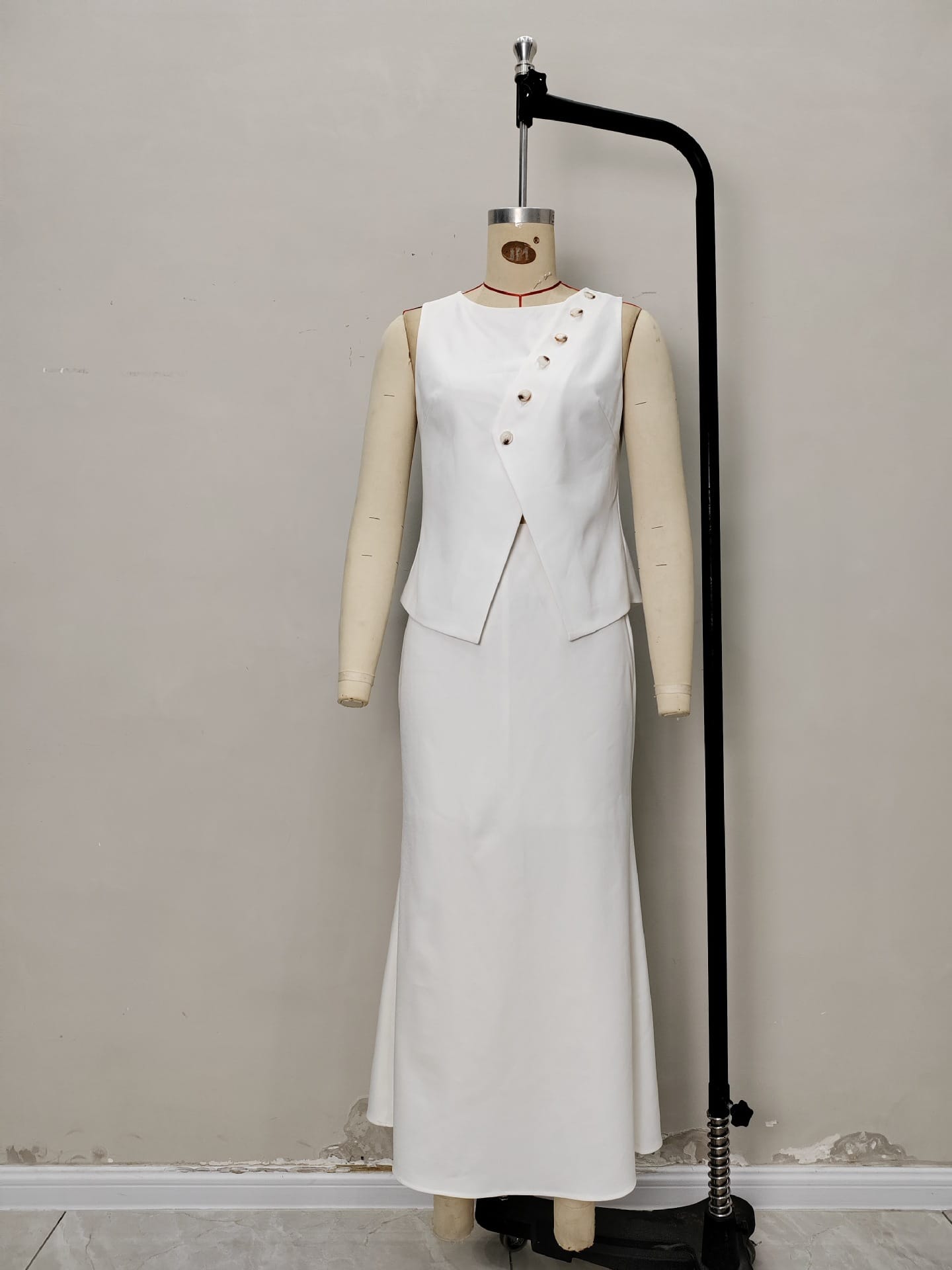 Yilu_High-quality round-neck solid-color mid-length skirt set with elegant and fashionable style