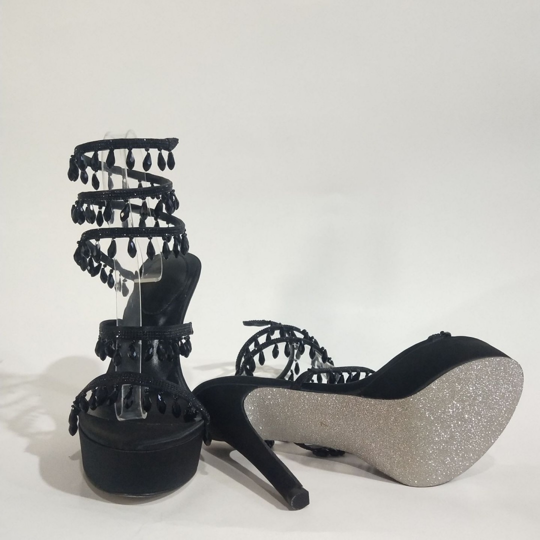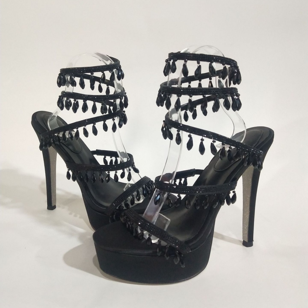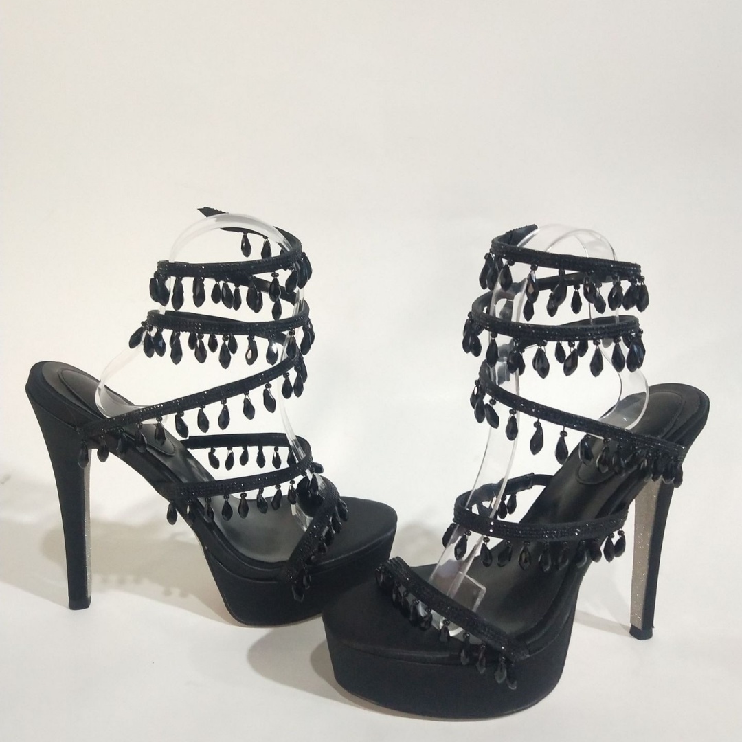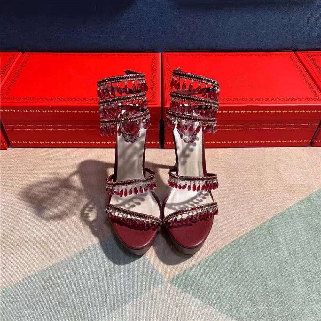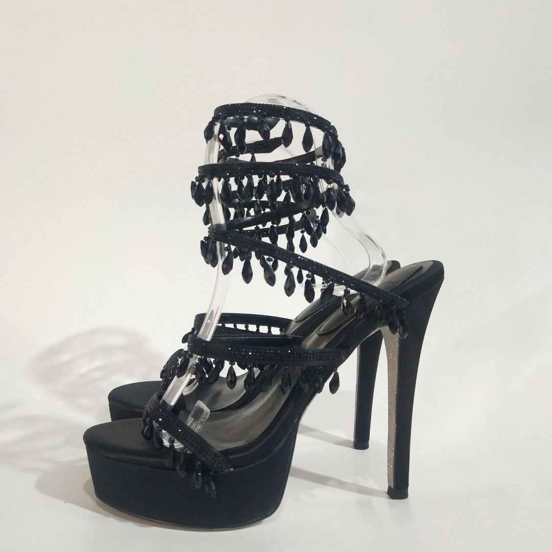 Yilu_High-quality round-toe high-heeled waterproof platform one-strap water-drop snake-shaped wrapped large-size beaded crystal thin heel sandals