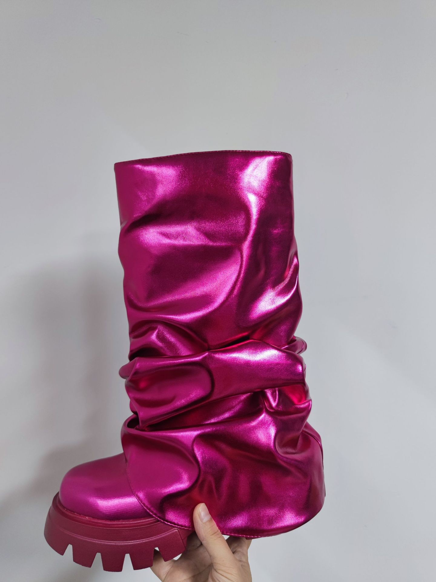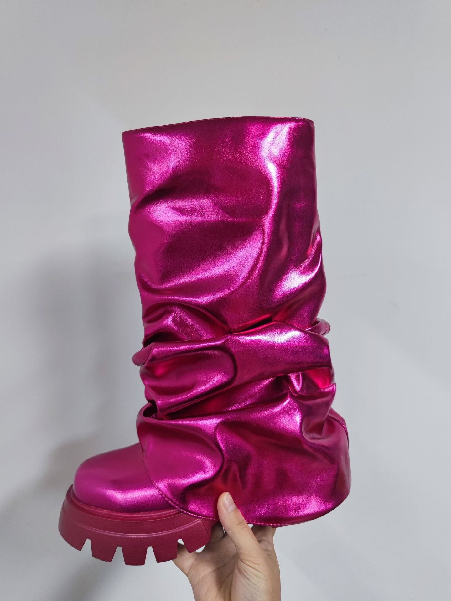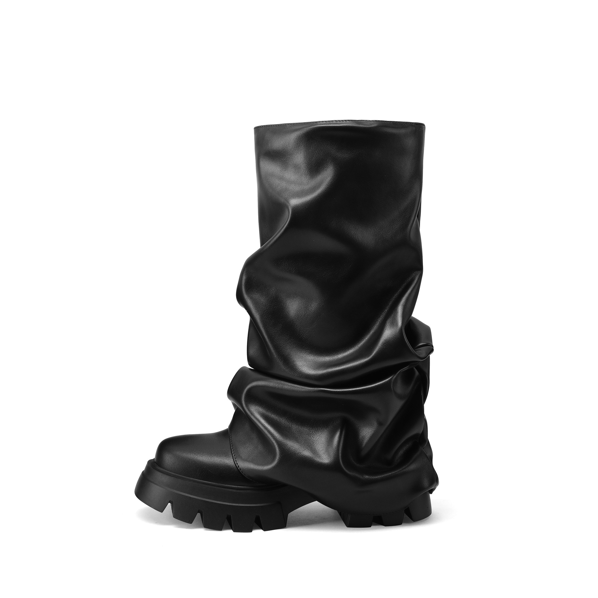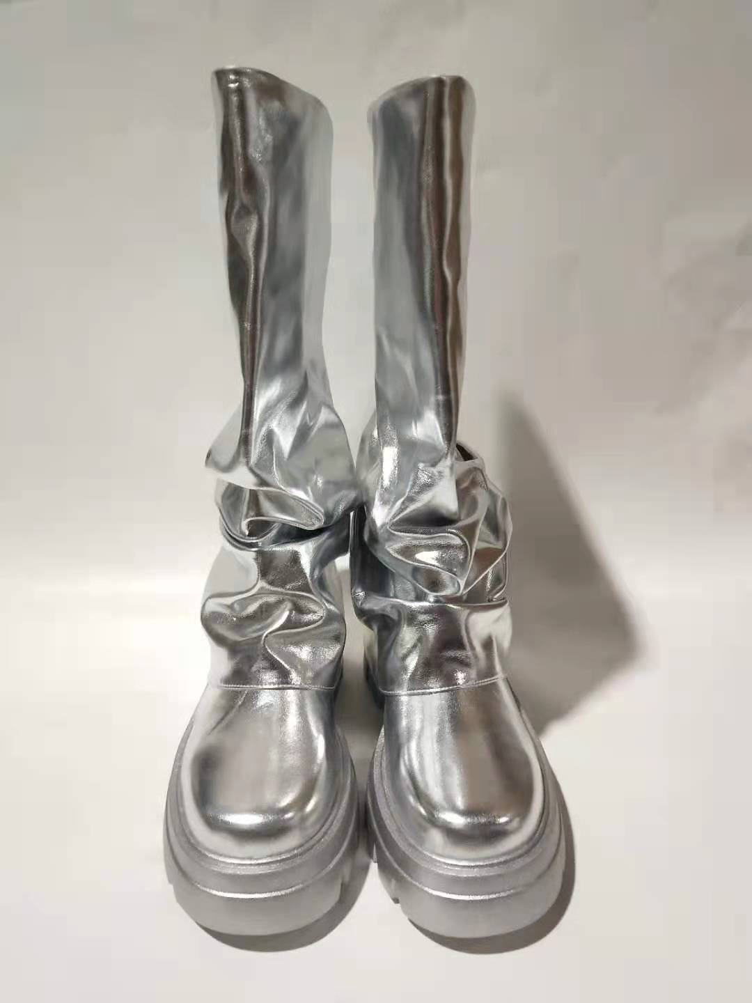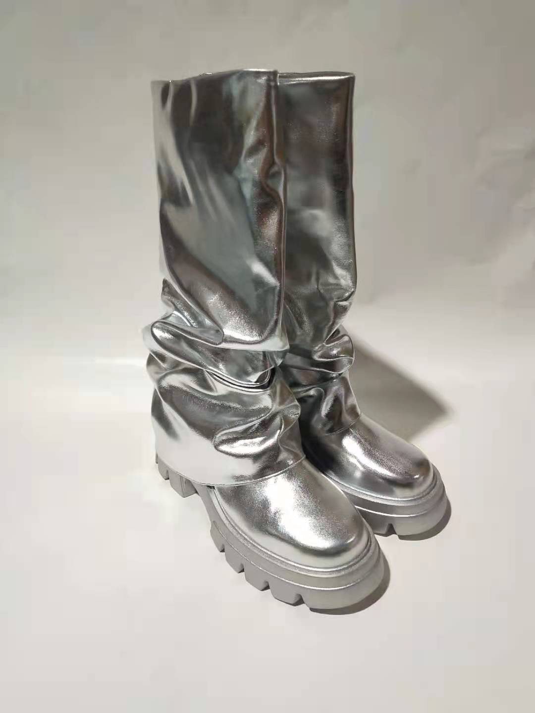 Yilu_High-quality round-toe thick-soled formed bottom wrinkled one-piece high-heeled women’s boots for big size fashion show