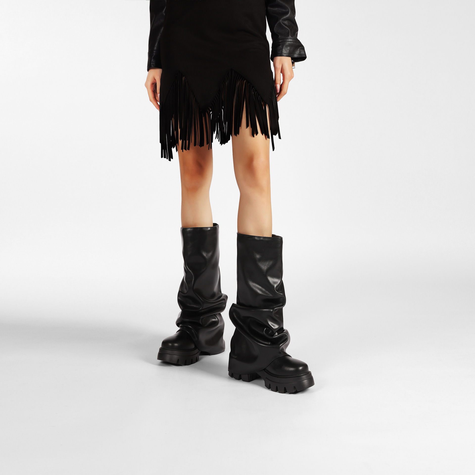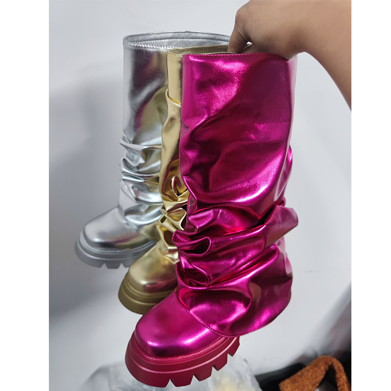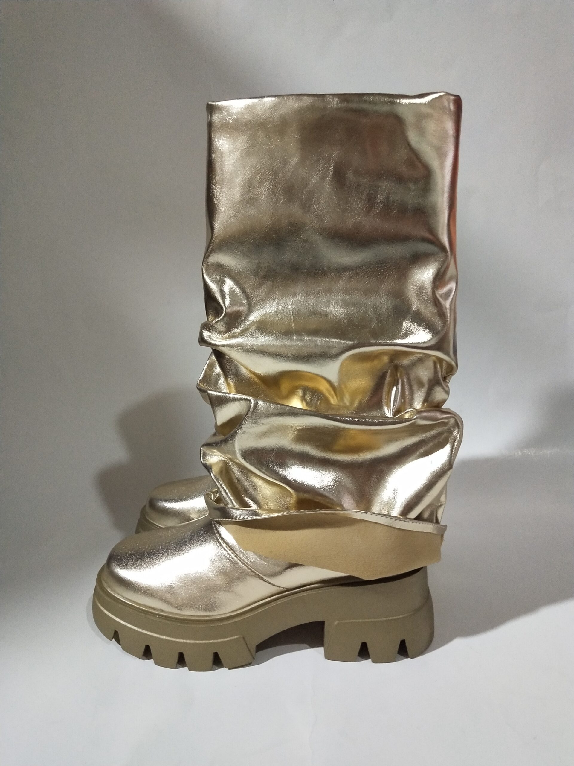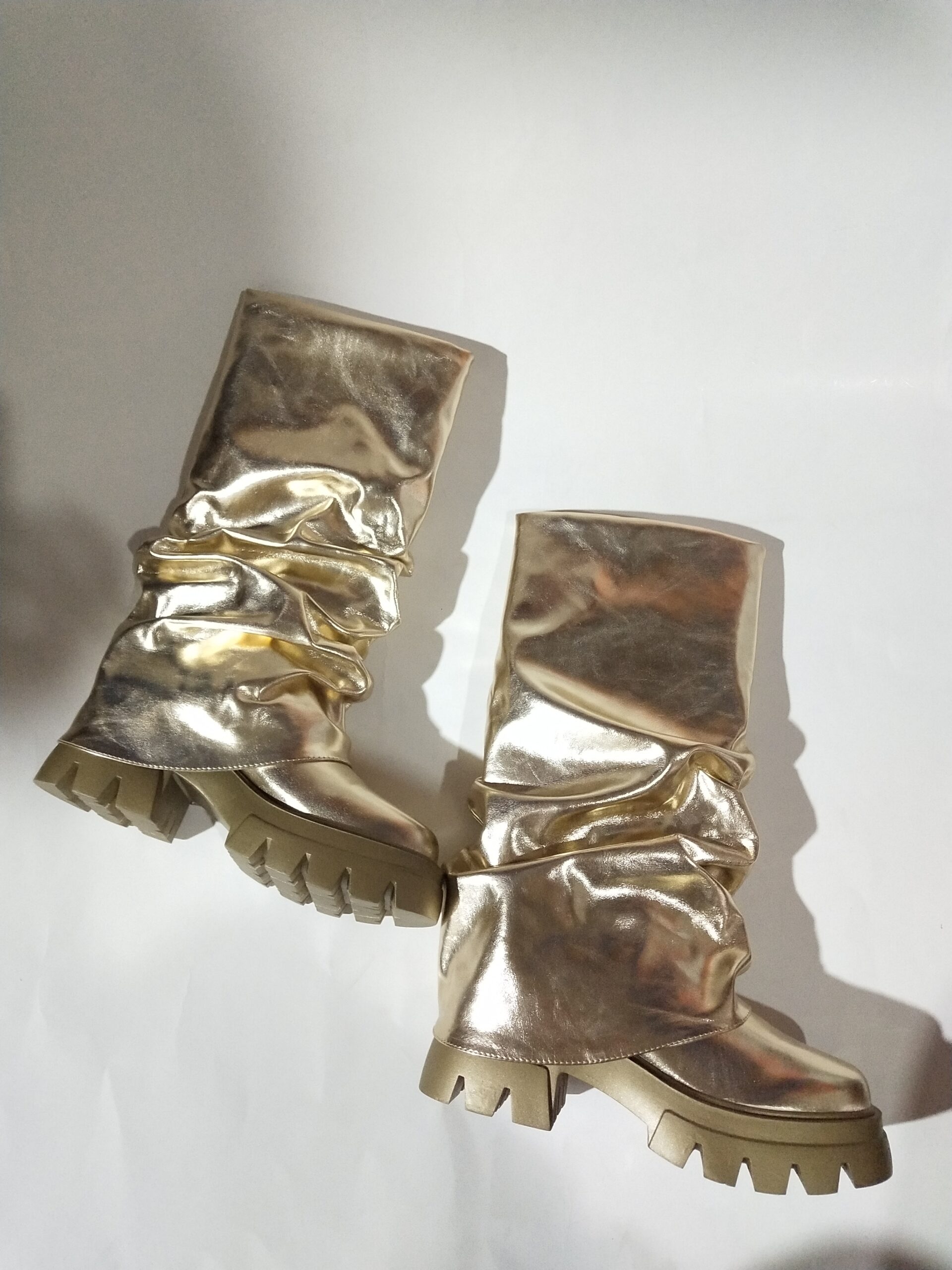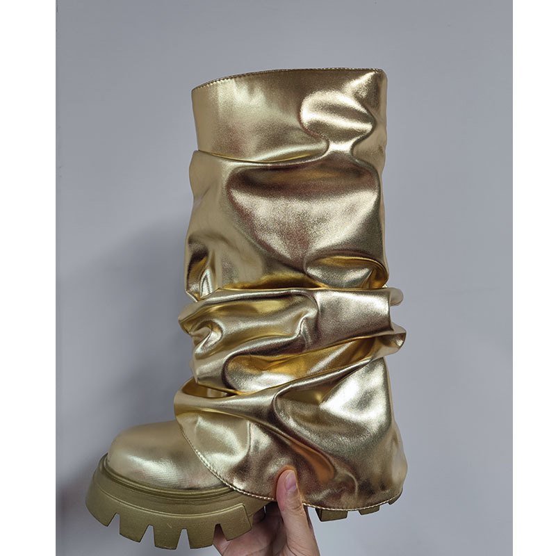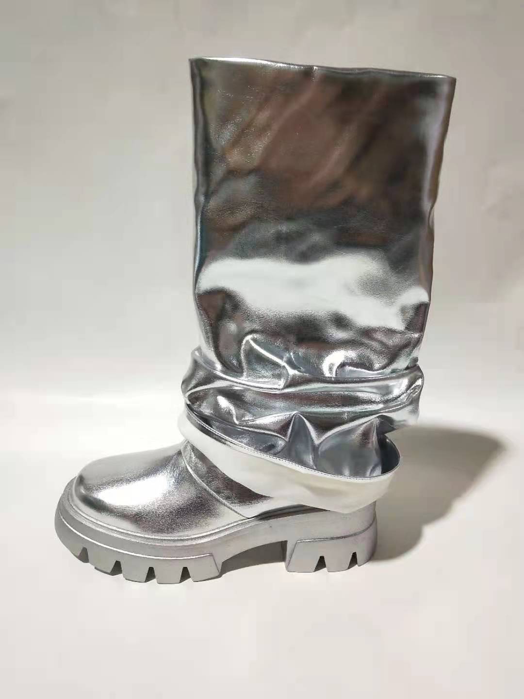 Yilu_High-quality round-toe thick-soled formed bottom wrinkled one-piece high-heeled women’s boots for big size fashion show