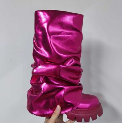 Yilu_High-quality round-toe thick-soled formed bottom wrinkled one-piece high-heeled women’s boots for big size fashion show
