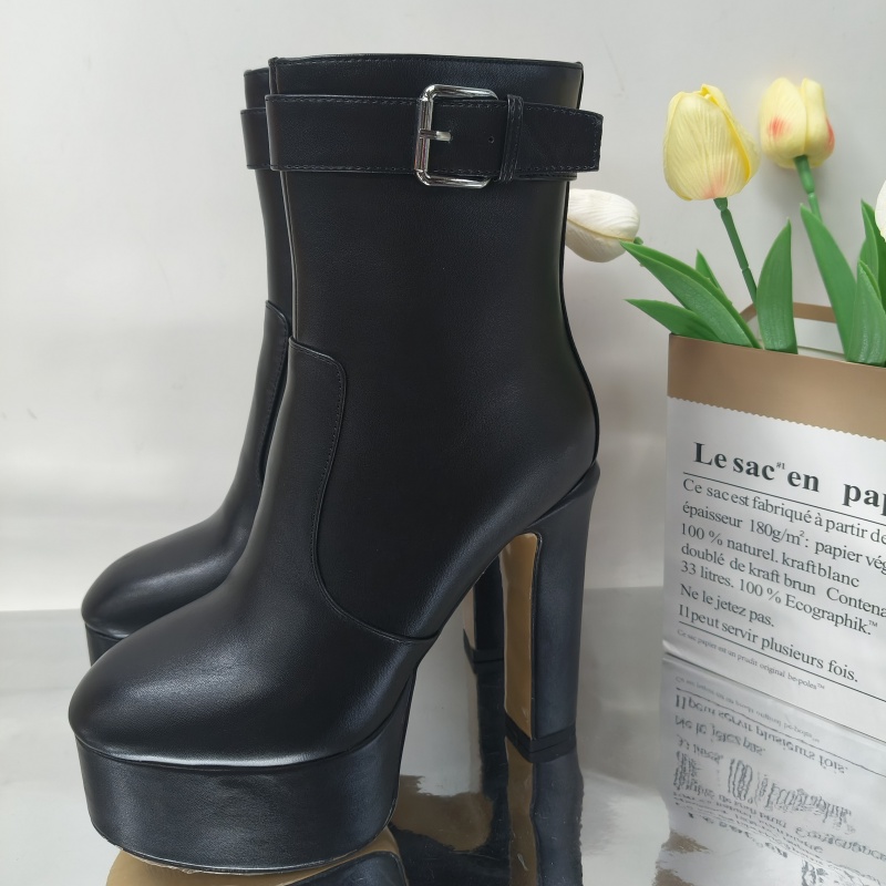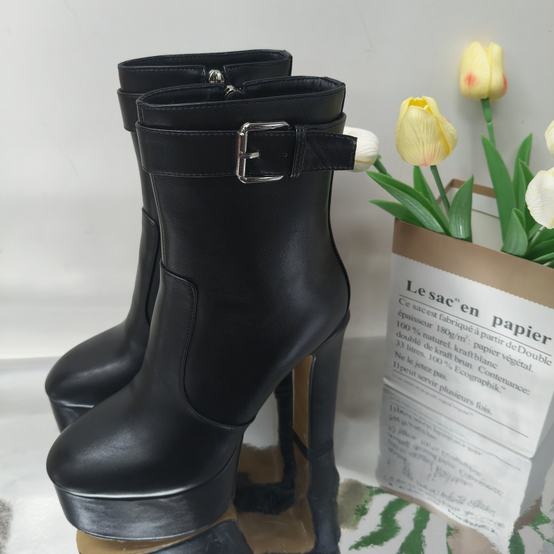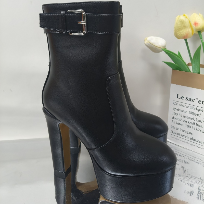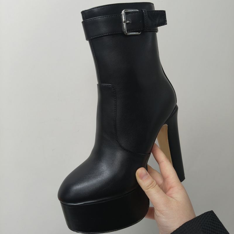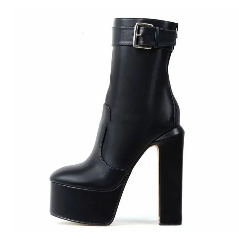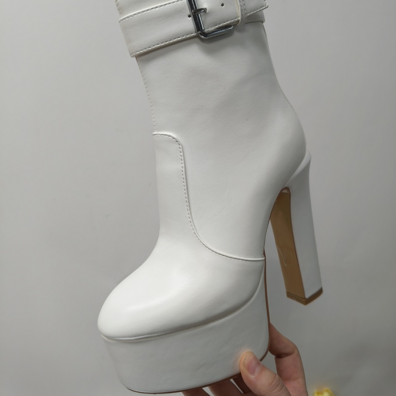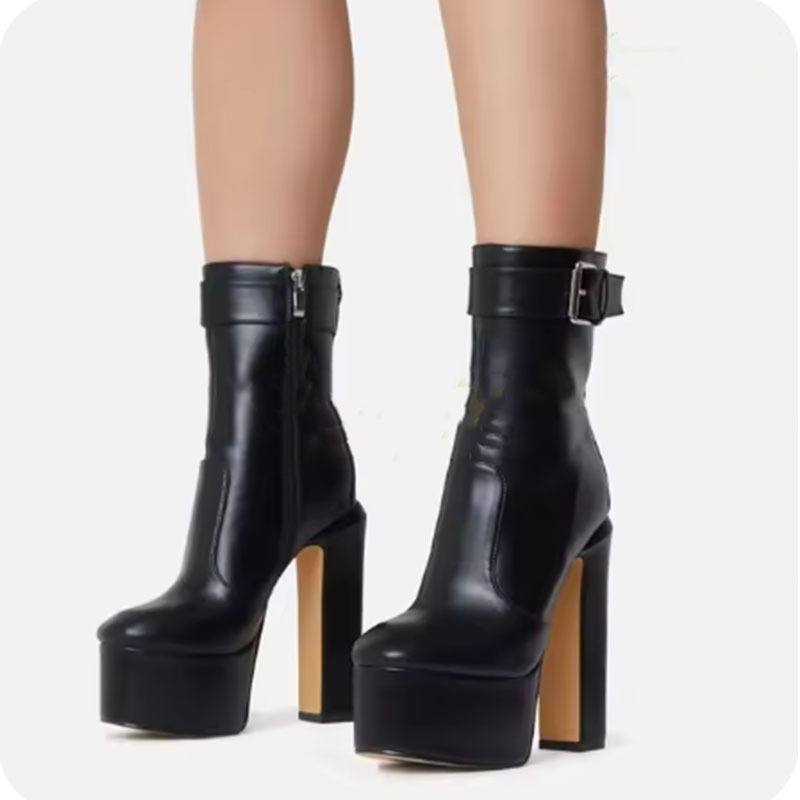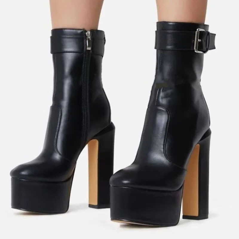 Yilu_High-quality round-toe thick-soled ultra-high heel waterproof platform side zipper hook showgirl big-size women’s boots
