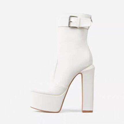 Yilu_High-quality round-toe thick-soled ultra-high heel waterproof platform side zipper hook showgirl big-size women’s boots