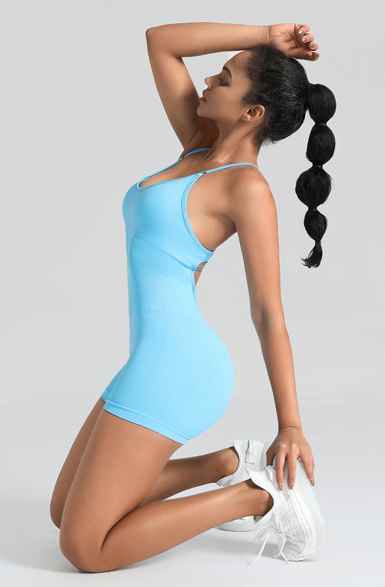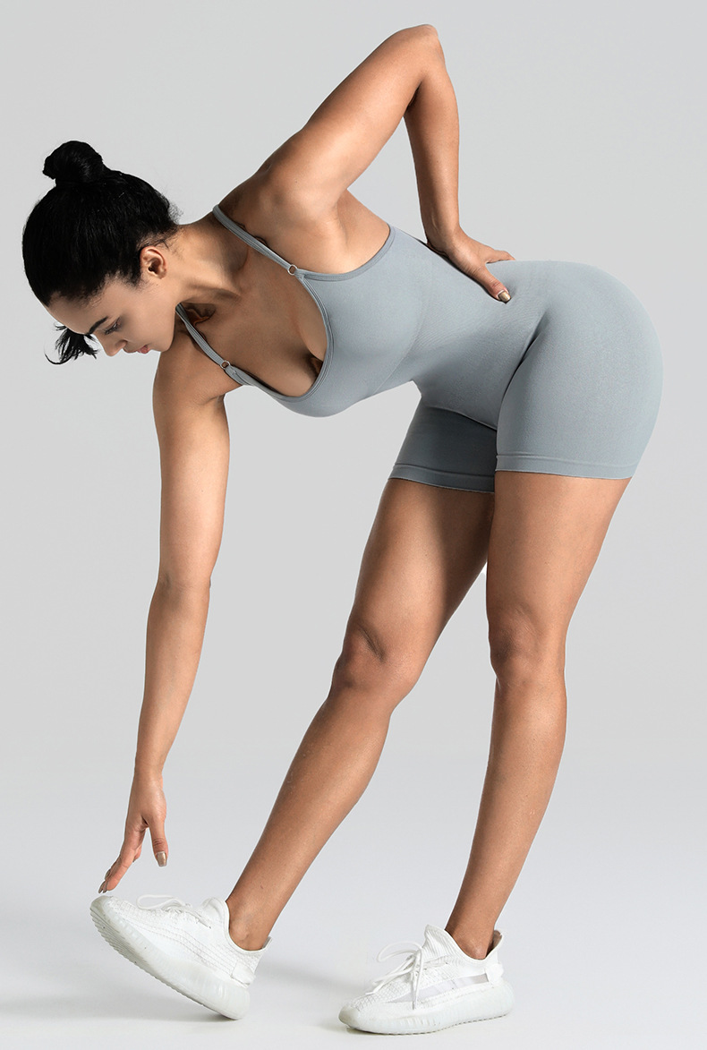 High-quality threaded shoulder strap seamless yoga suit one-piece bodysuit tight sports fitness wear for women