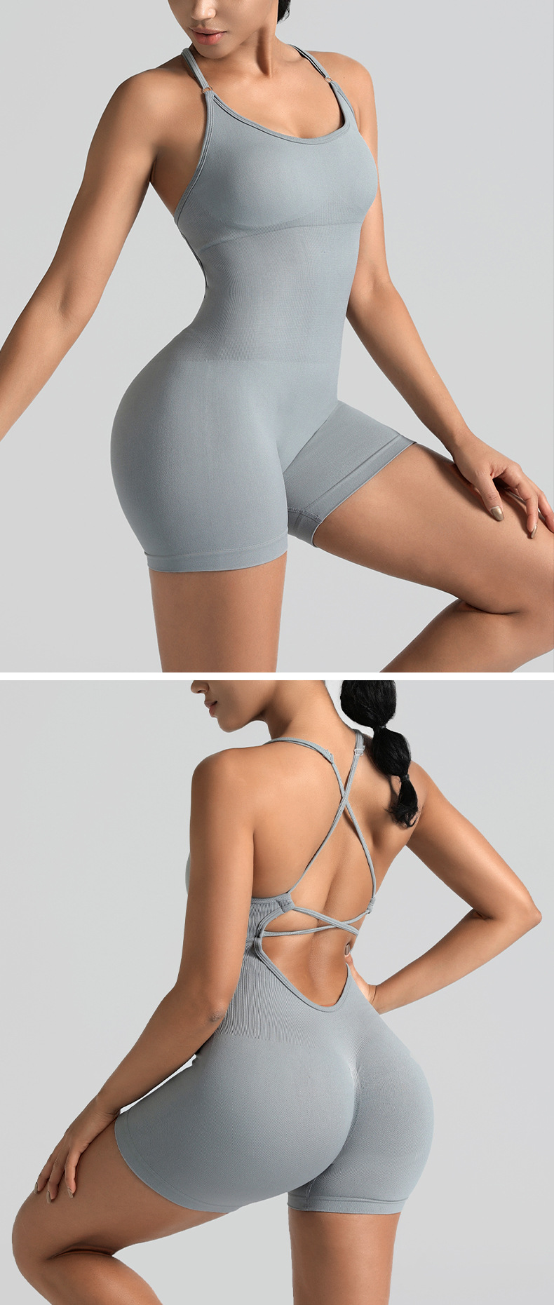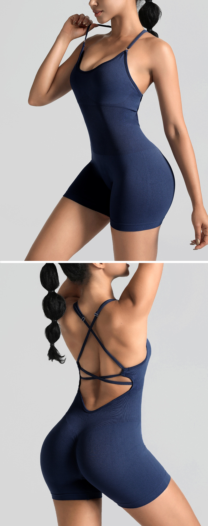 High-quality seamless threaded one-piece yoga set with elegant back design, sexy and form-fitting sports tight one-piece clothing
