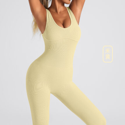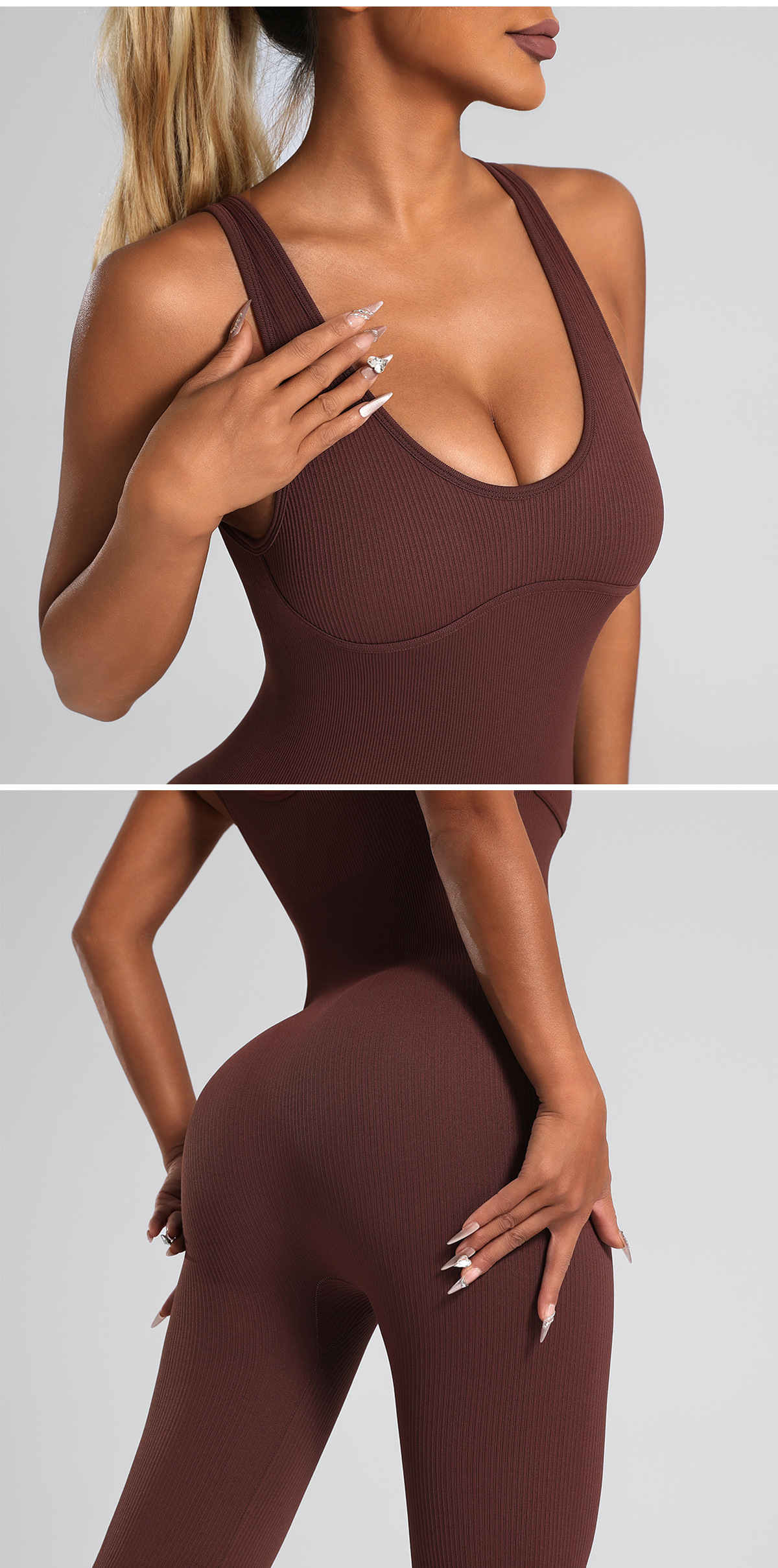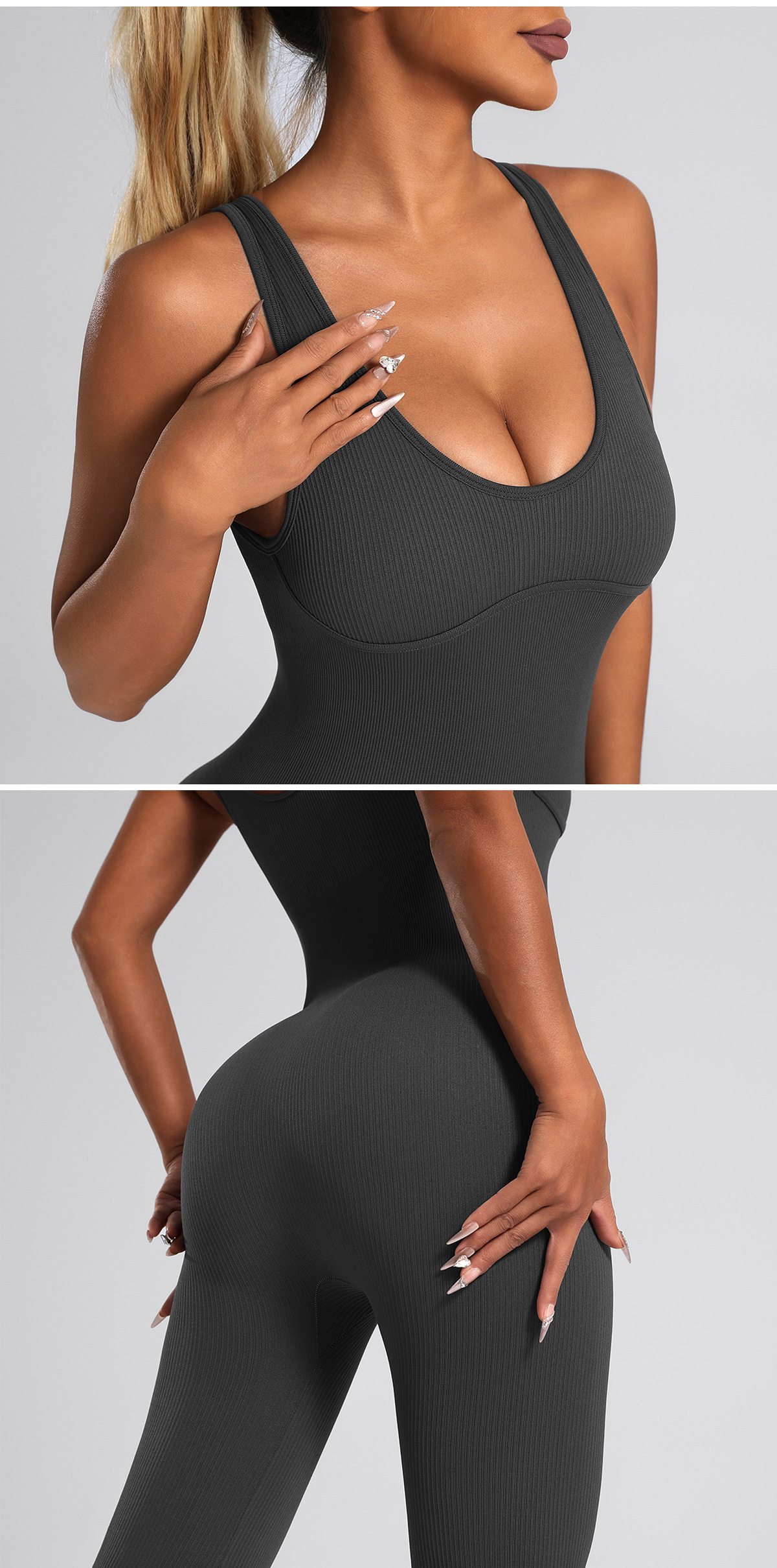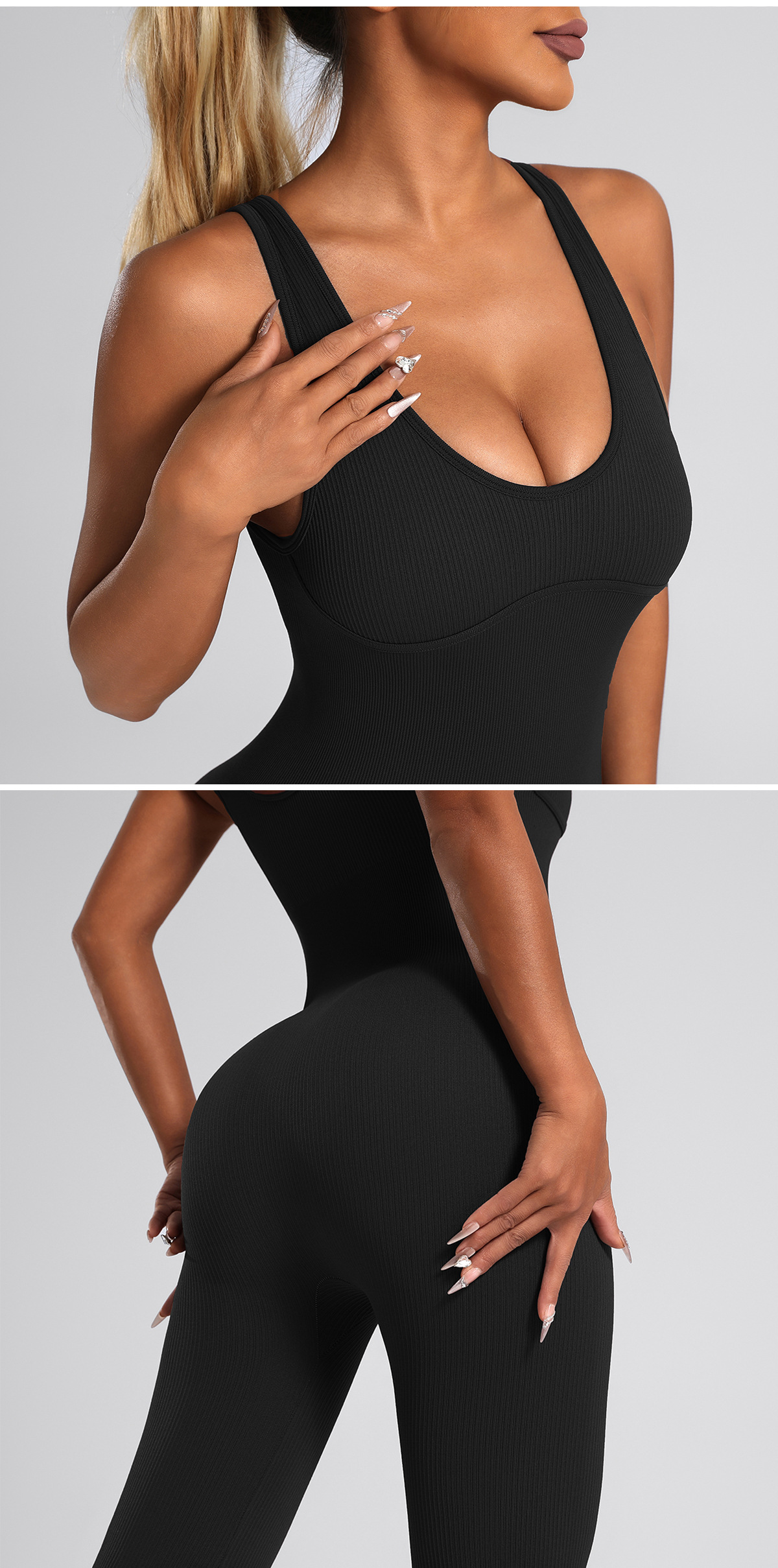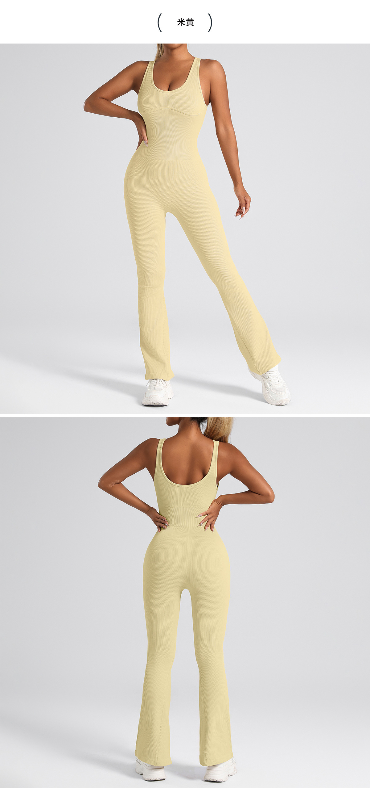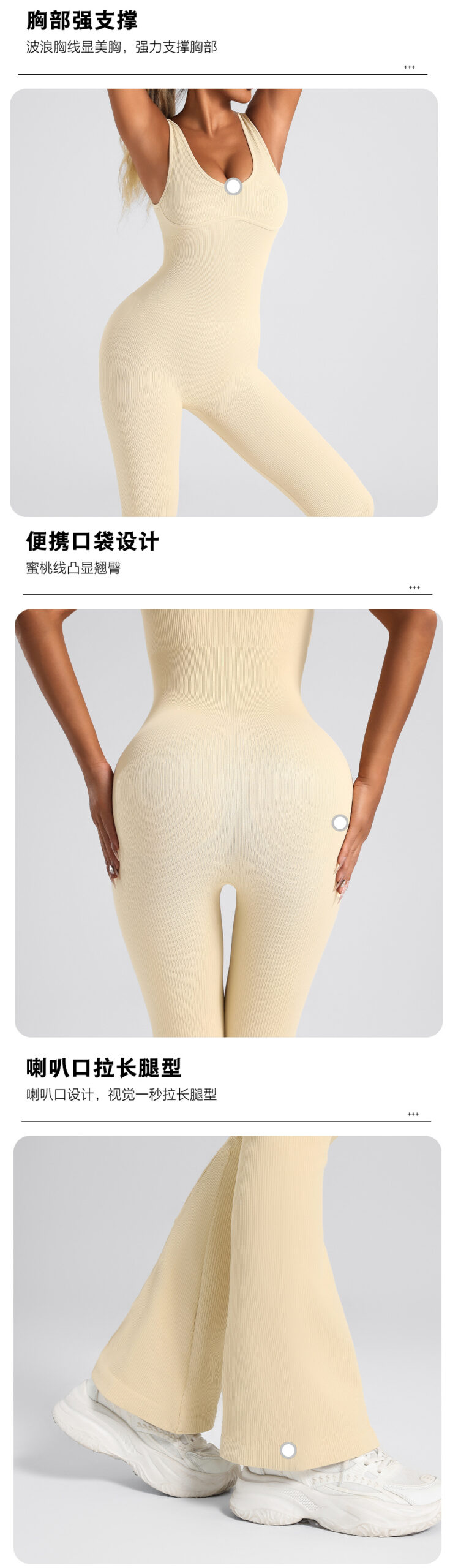 High-quality seamless tight-fitting one-piece yoga pants with wide legs, high elasticity, one-piece integrated workout clothes that dry quickly, women’s fitness sports one-piece clothing