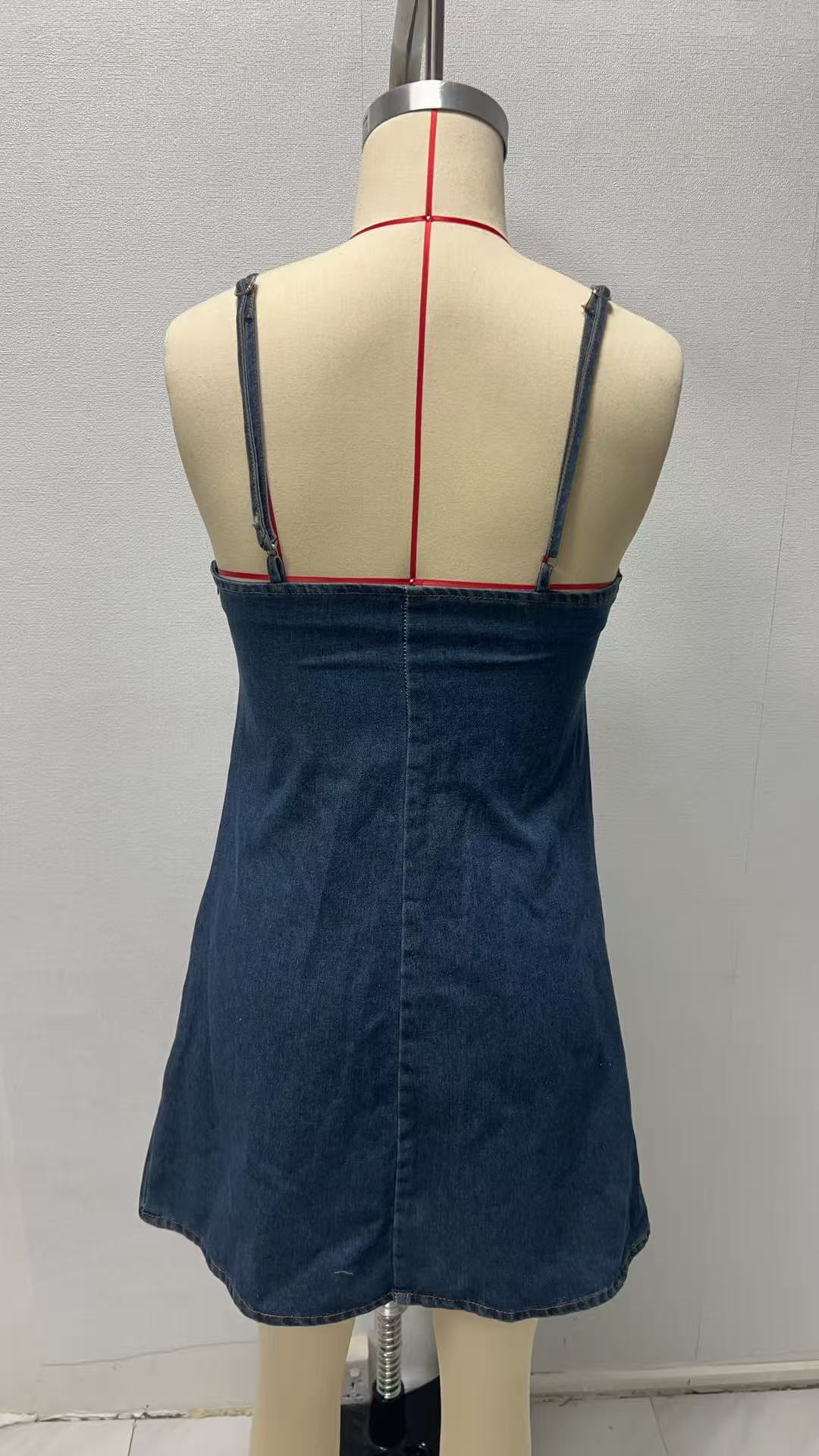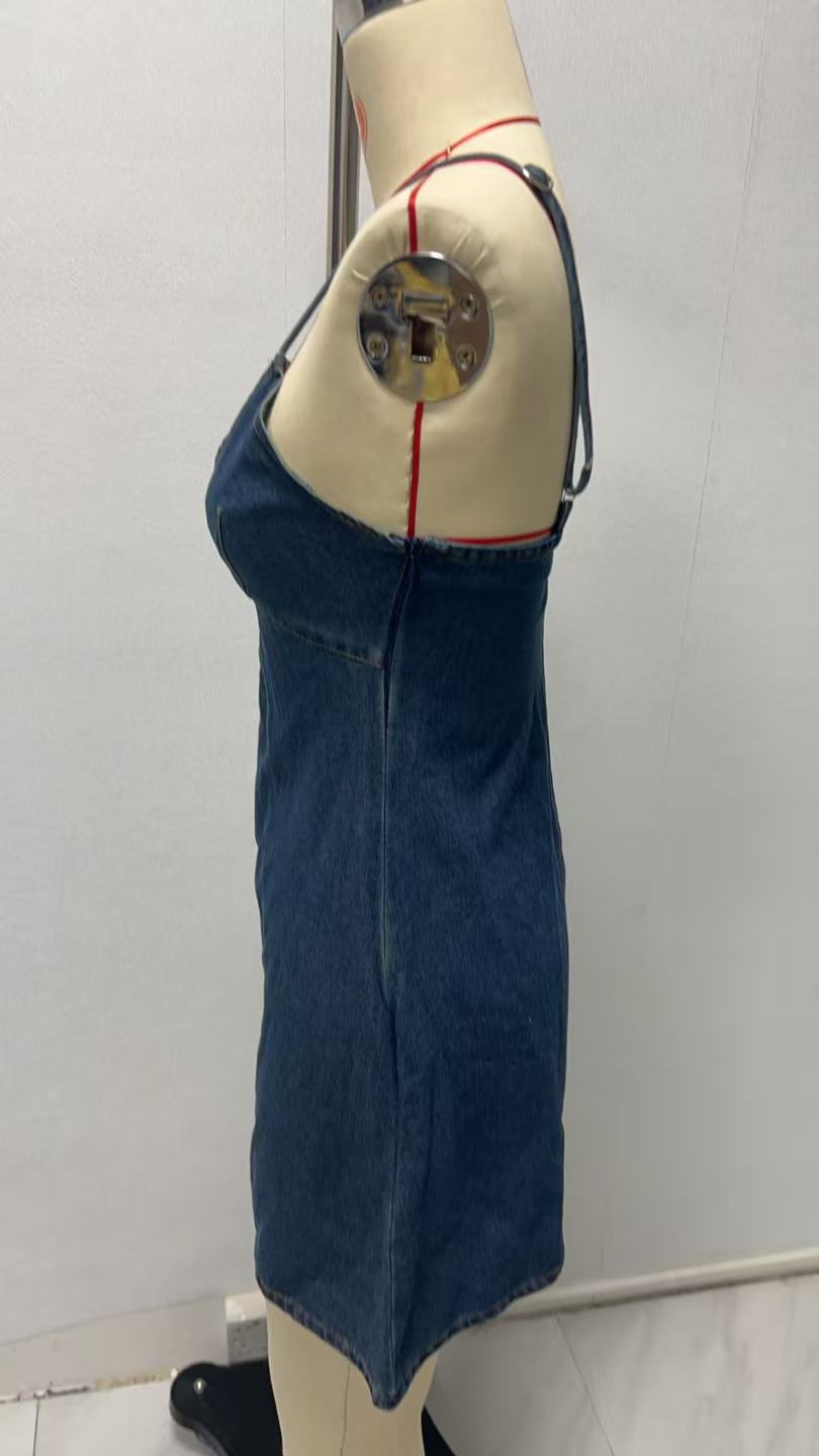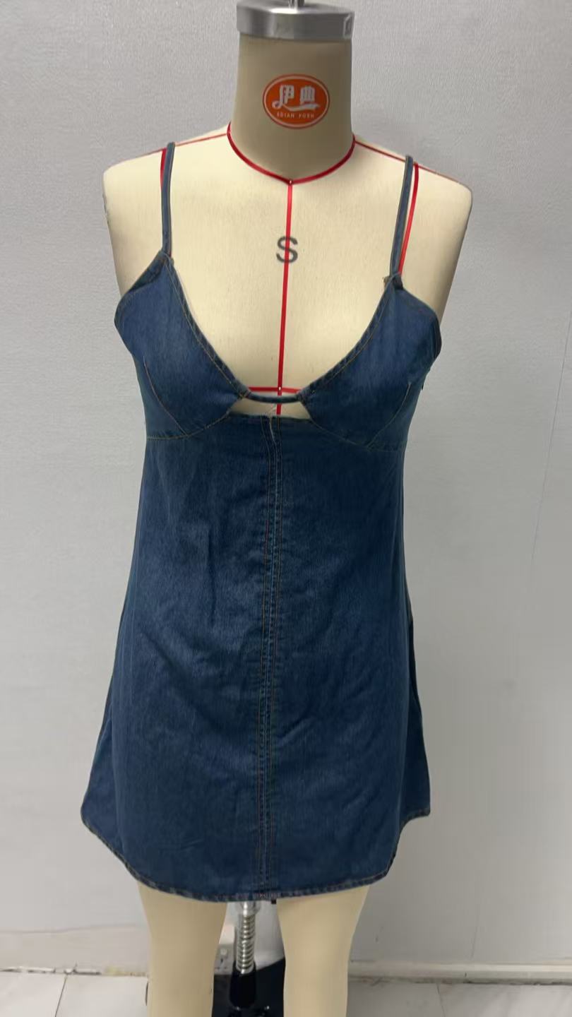 Style: Fashionable and Sexy, Low-Chest Denim Dress, Suitable for Various Occasions