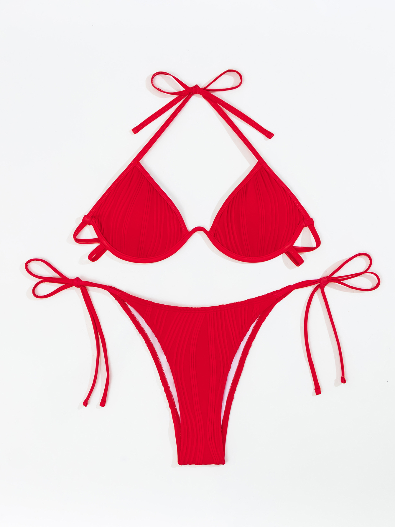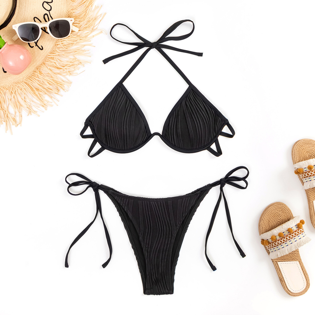 High-quality sexy swimsuit in solid color with steel straps bikini set
