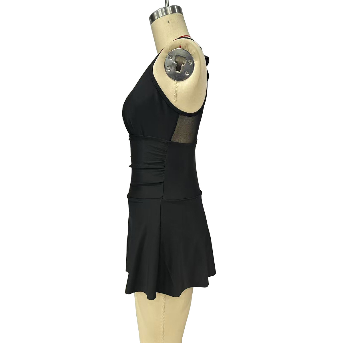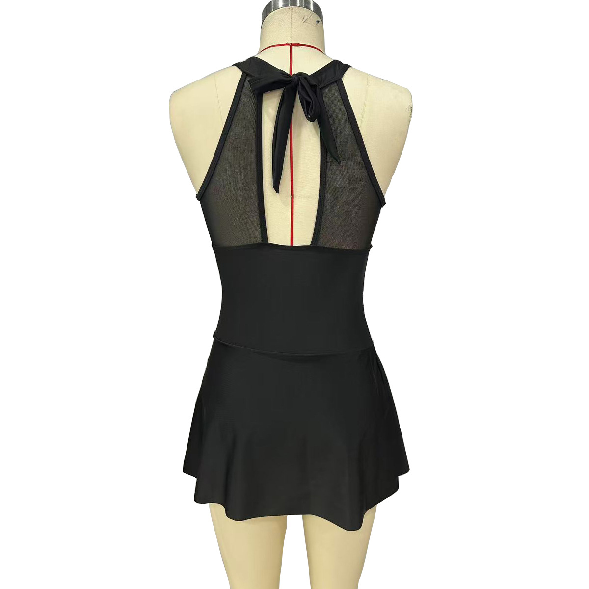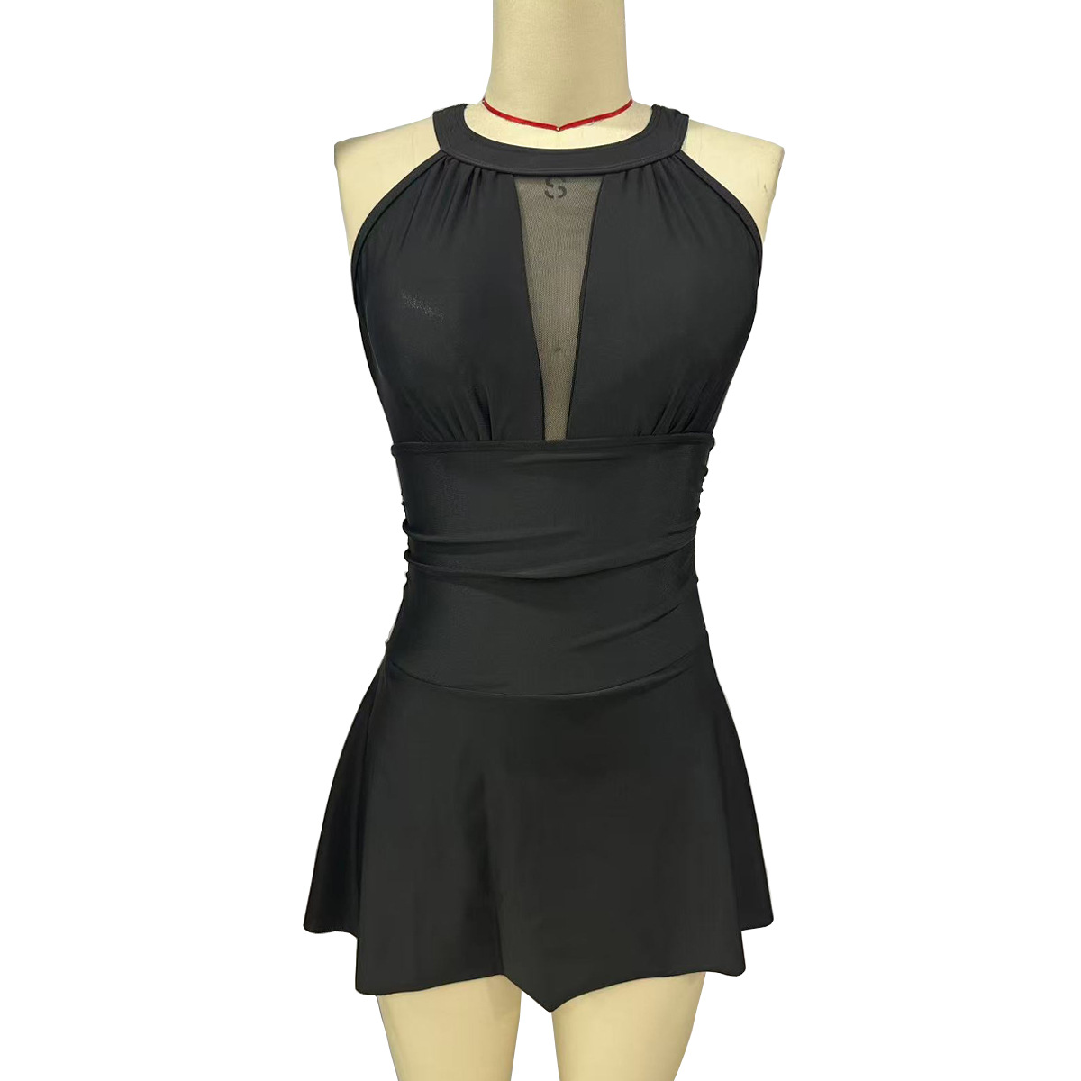High-quality sexy swimsuit – premium solid-color dress-style net gauze halter-neck sleeveless one-piece swimsuit