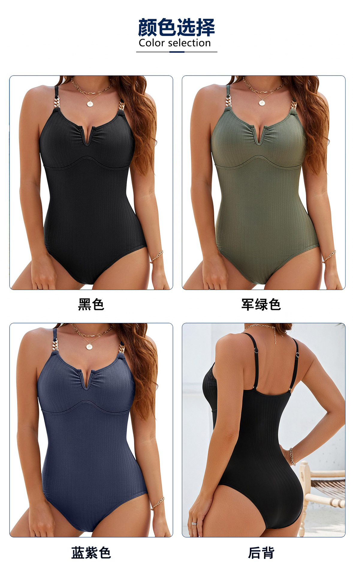 High-quality sexy V-neck chain shoulder strap women’s swimsuit swimsuit