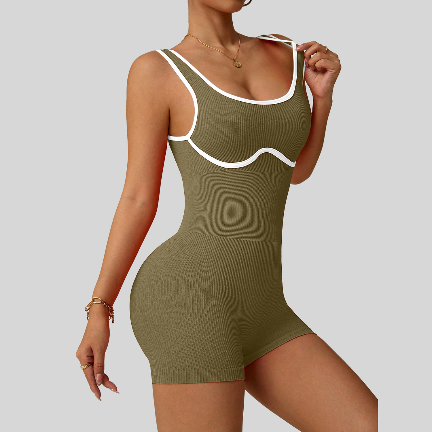 High-quality threaded shoulder strap seamless yoga suit one-piece bodysuit tight sports fitness wear for women