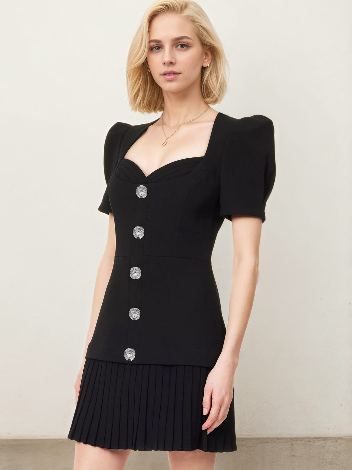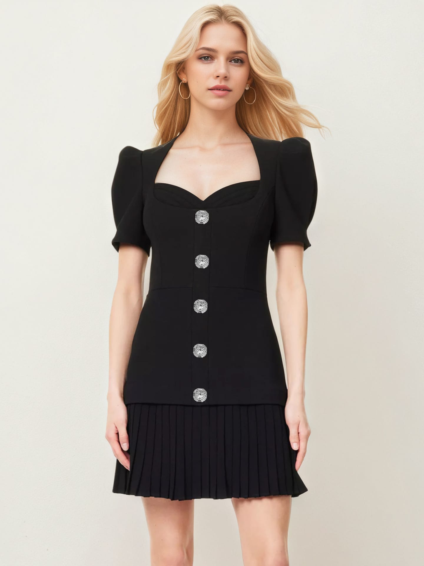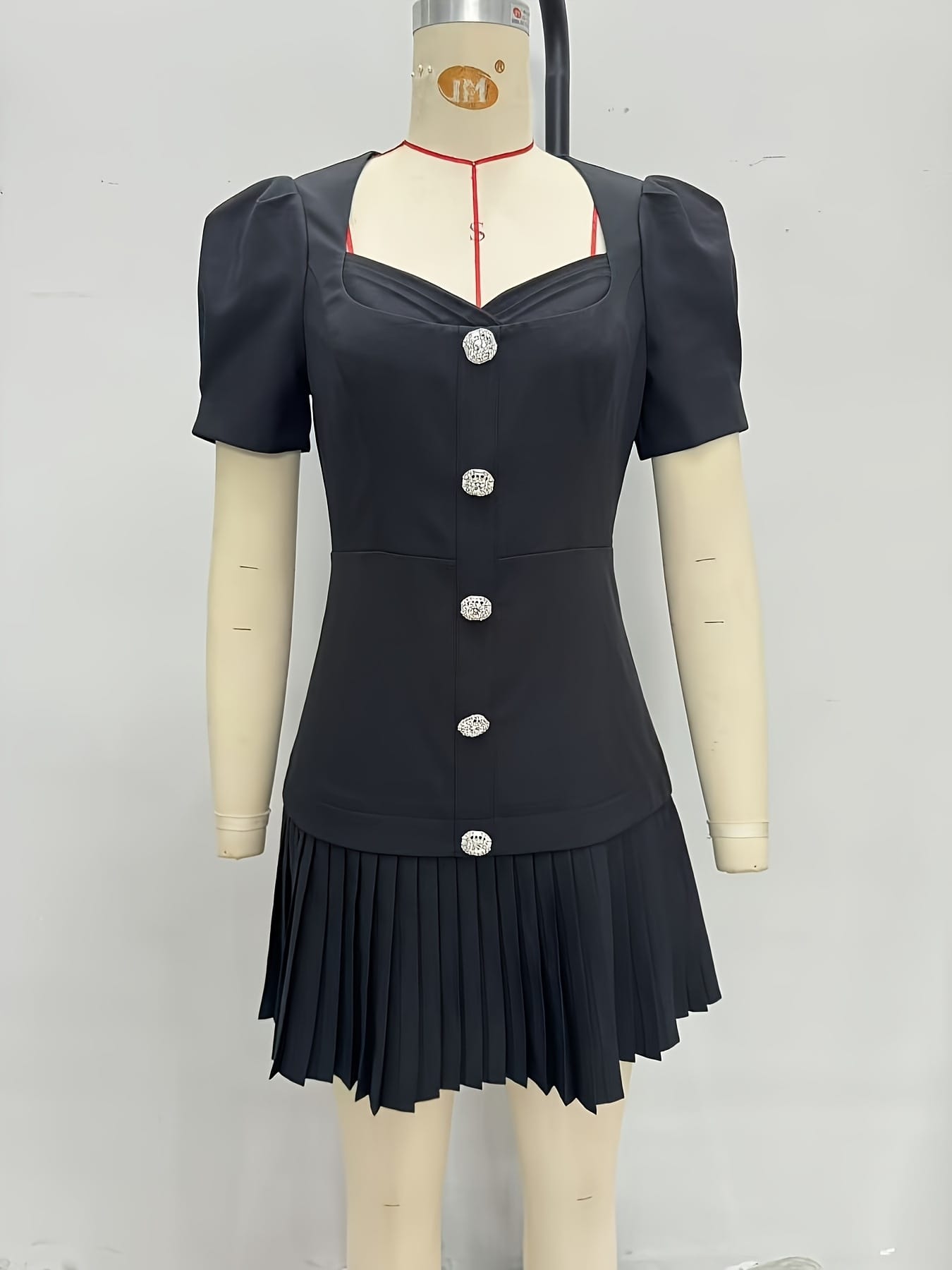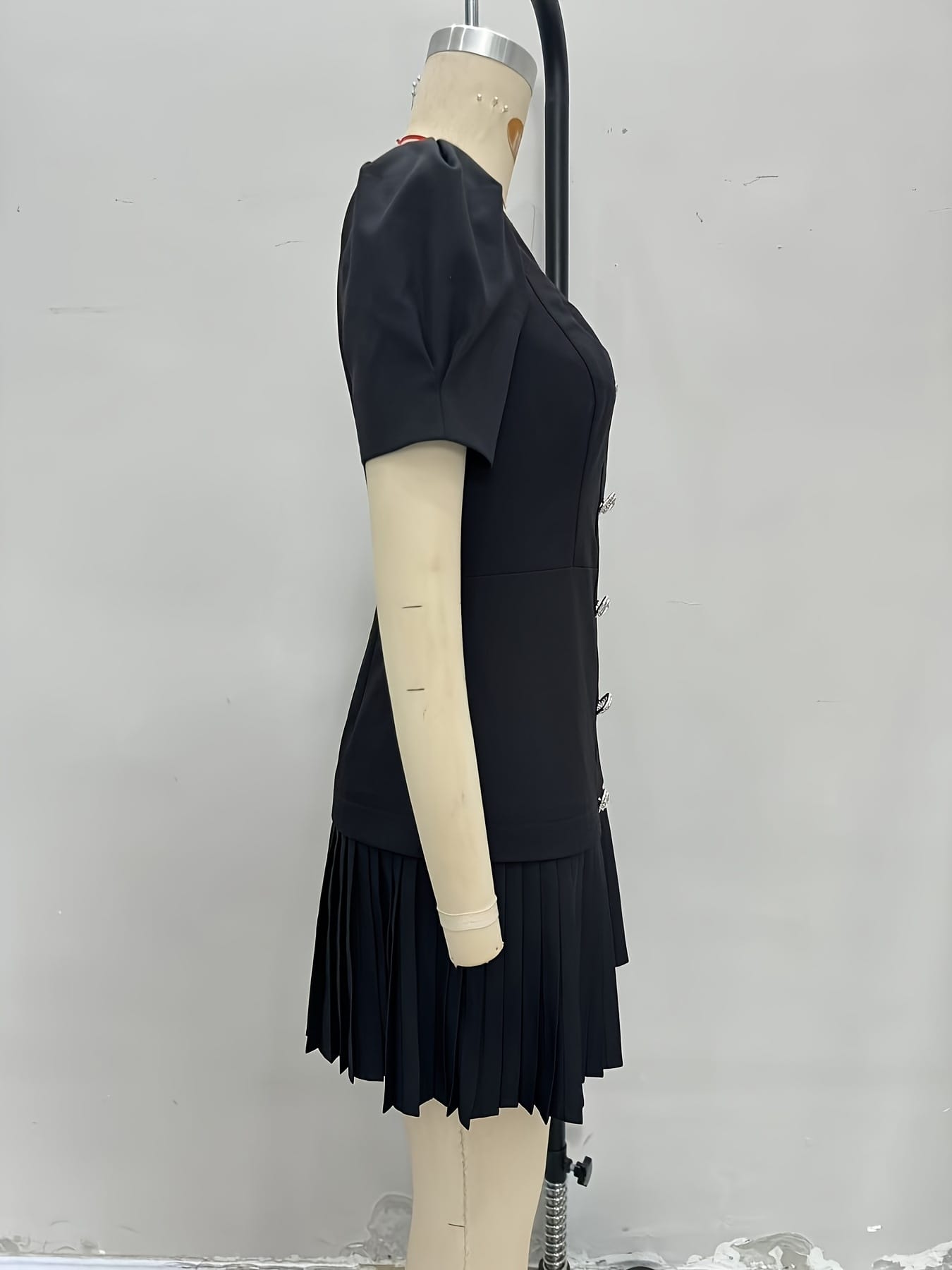 Yilu_High-quality single-button slim-fitting short-sleeved dress