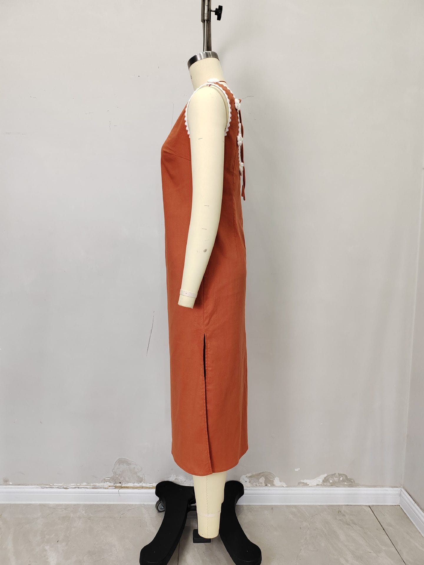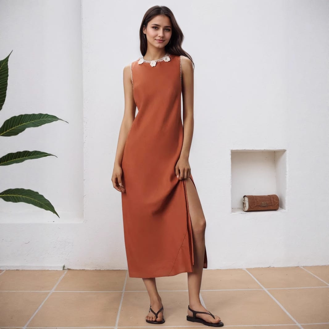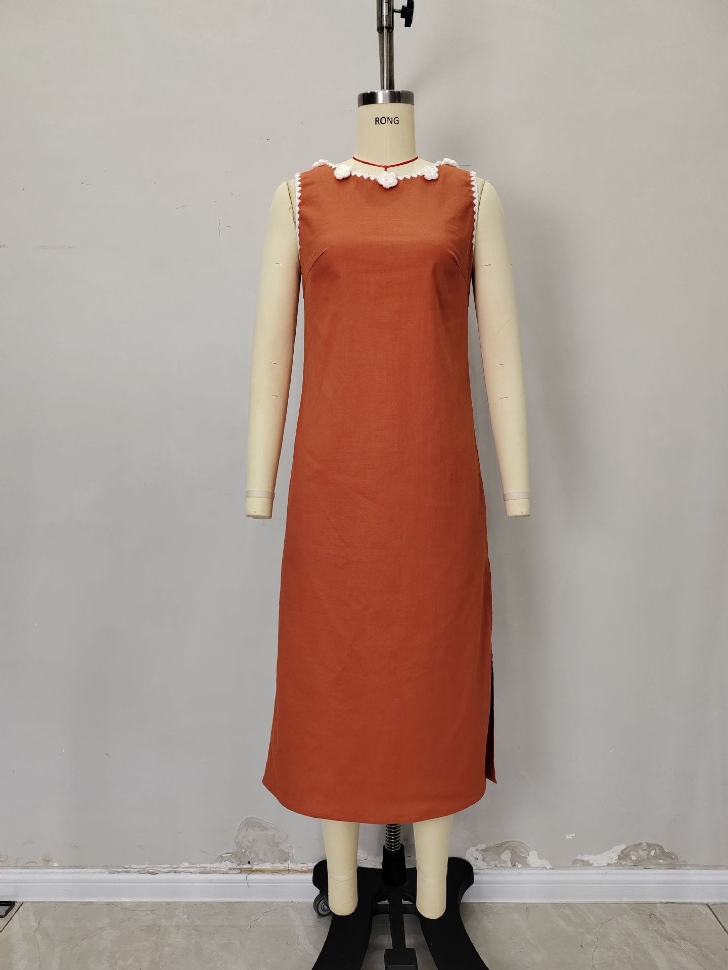 Yilu_High-quality sleeveless slit dress with delicate floral pearl collar for ladies’ formal wear