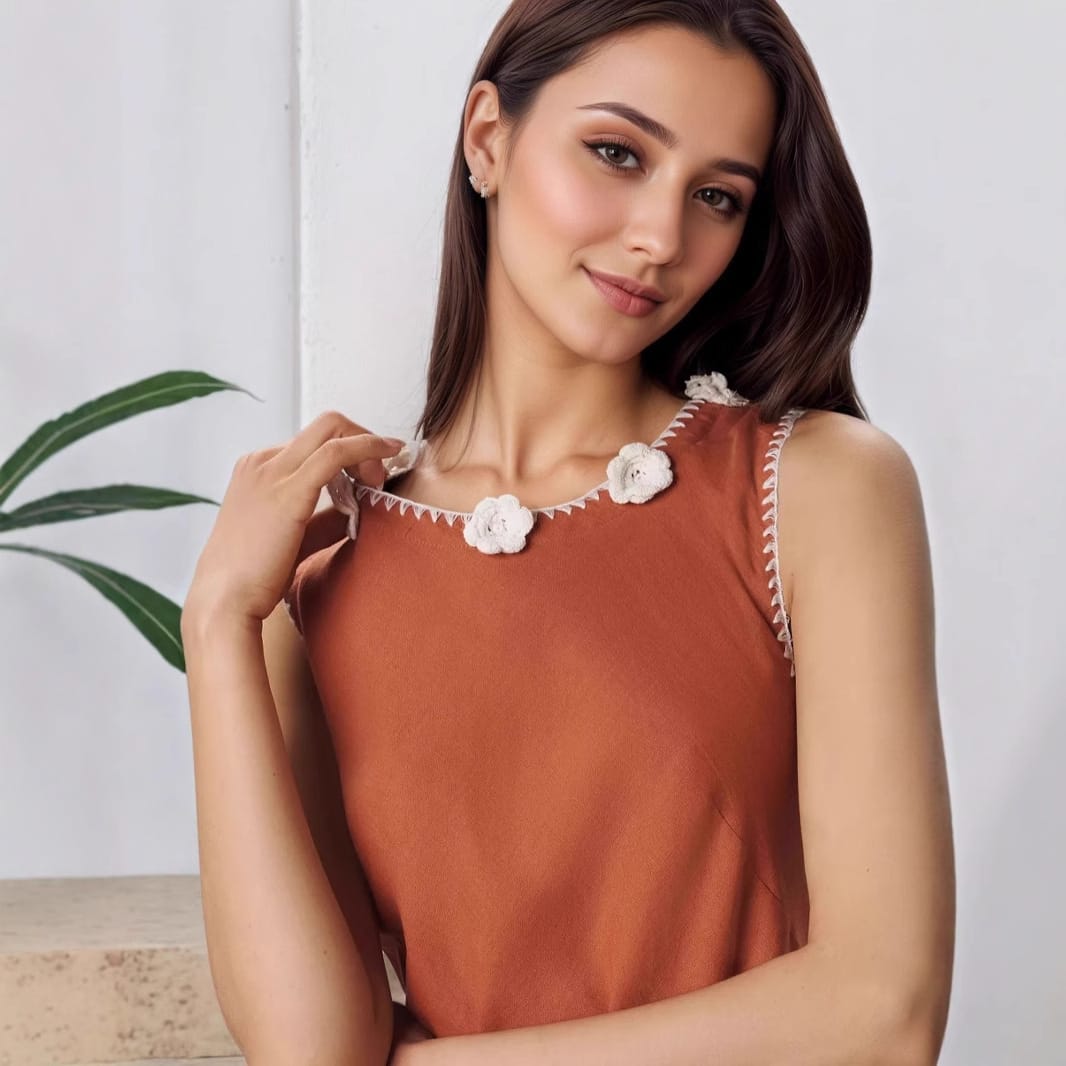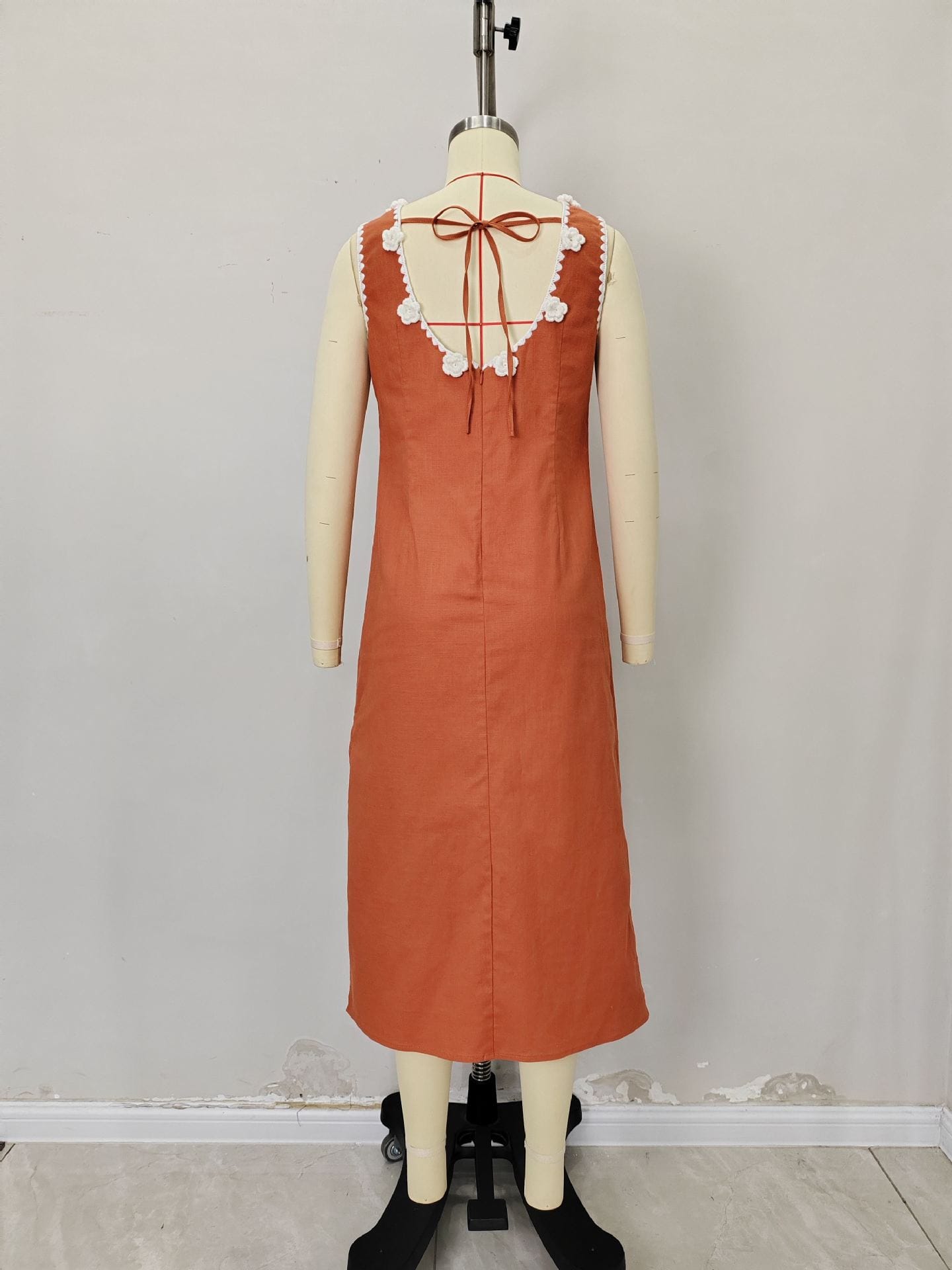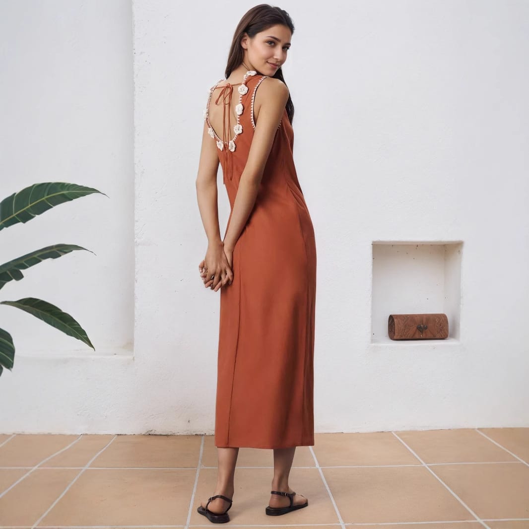 Yilu_High-quality sleeveless slit dress with delicate floral pearl collar for ladies’ formal wear