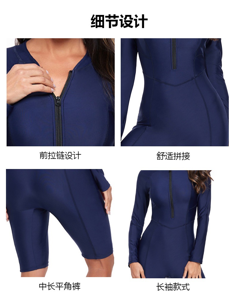 High-quality solid-color fitted long-sleeved sun protection surfing suit that is conservative and slimming, with zippers and a one-piece diving suit for swimming.