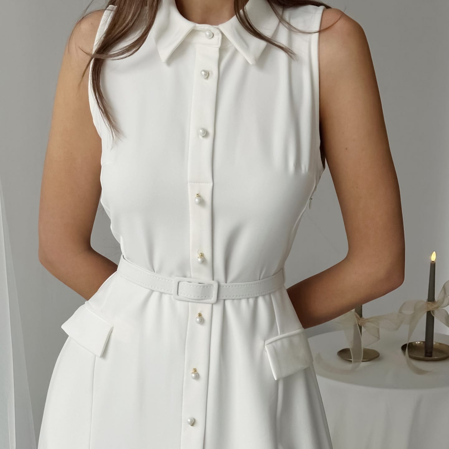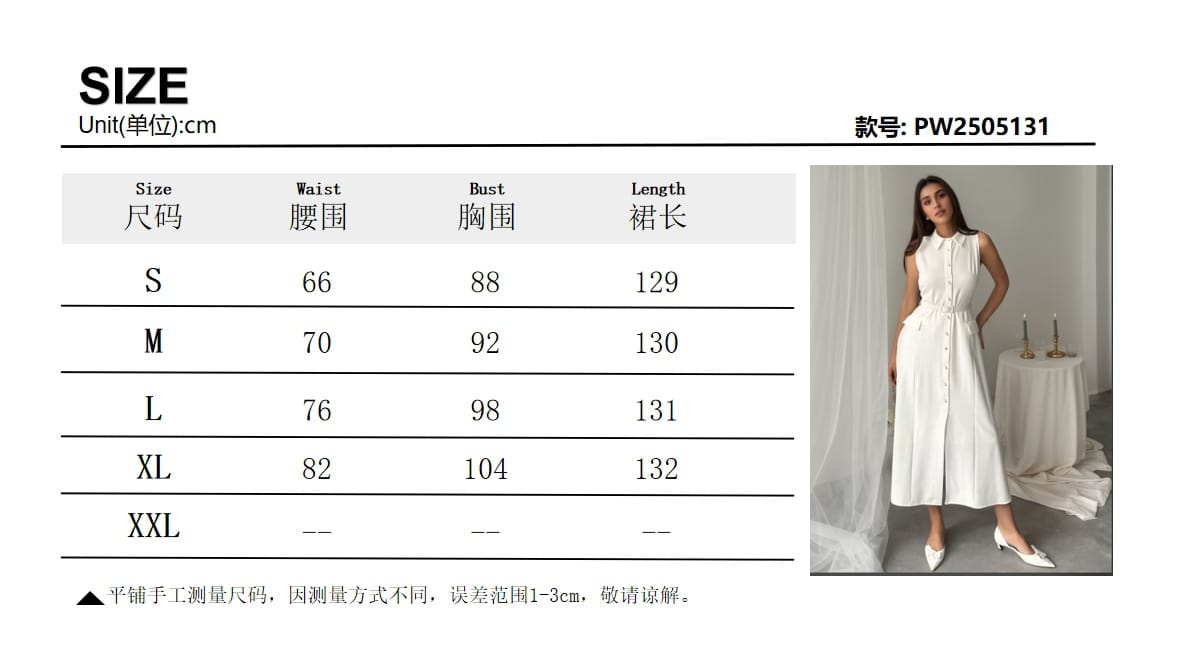 Yilu_High-quality solid-color sleeveless belt with pearl buttons, fitted and slit dress