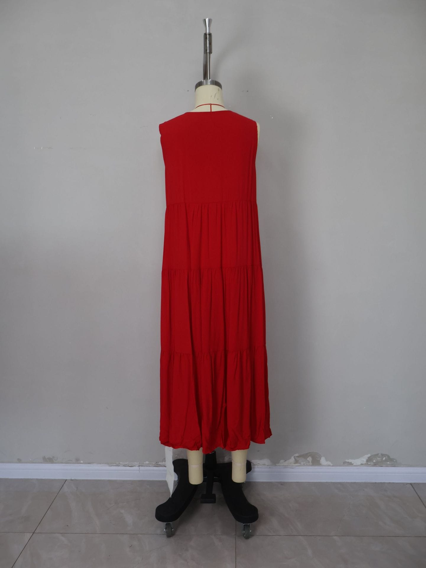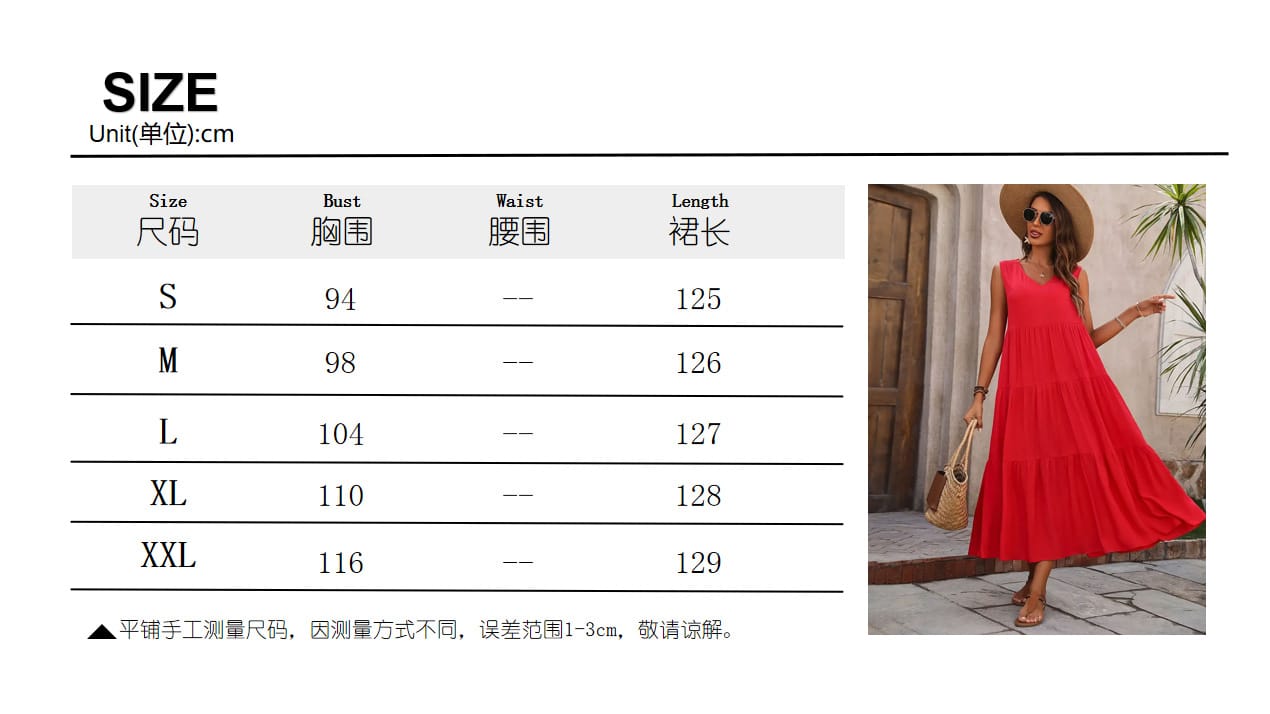 Yilu_High-quality solid-color V-neck layered and stitched skirt with a loose fit at the bottom