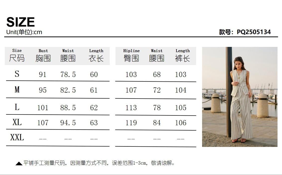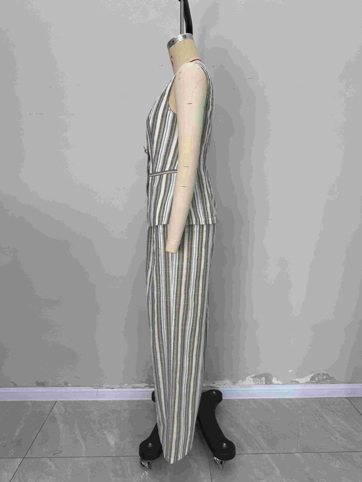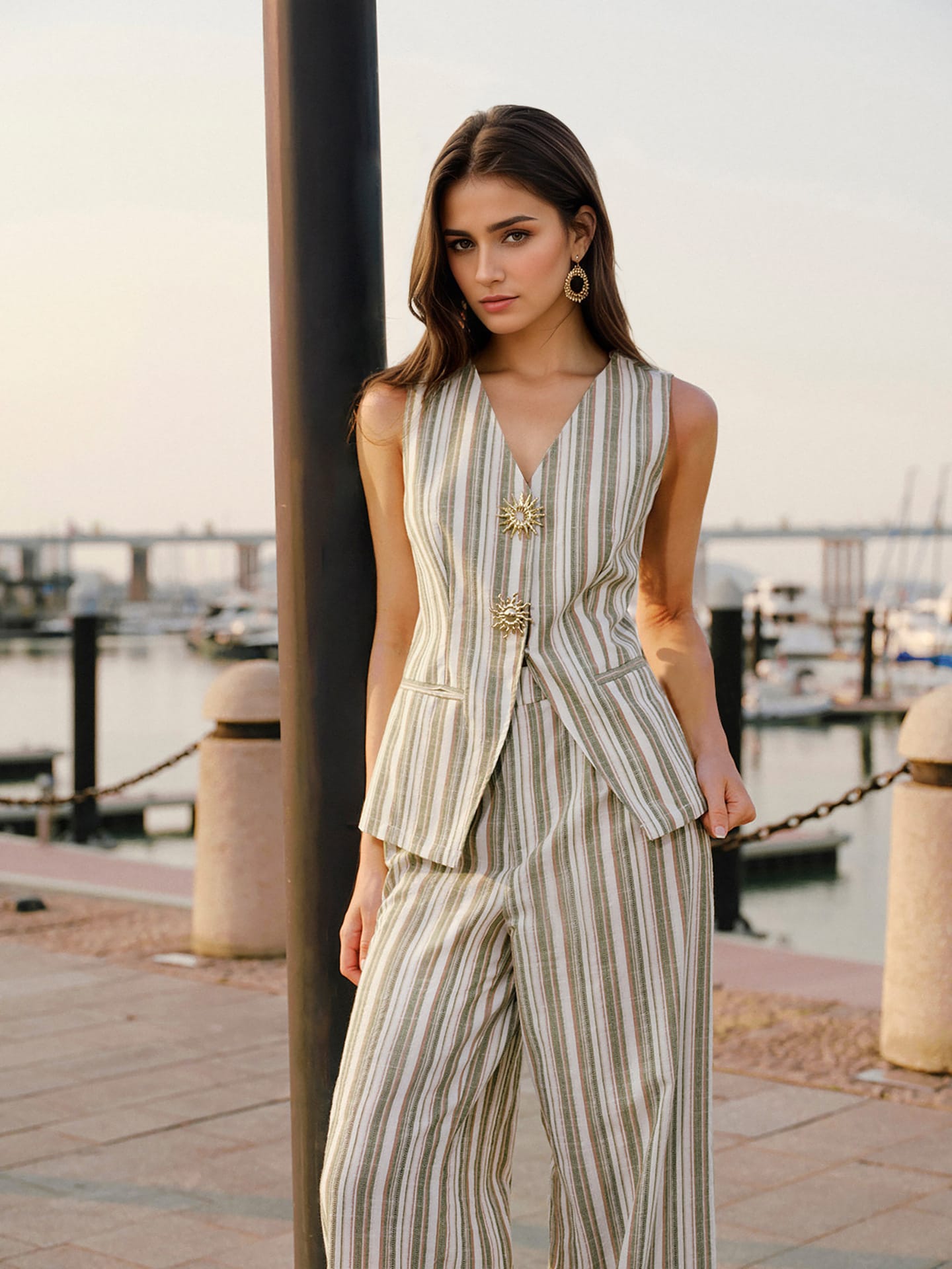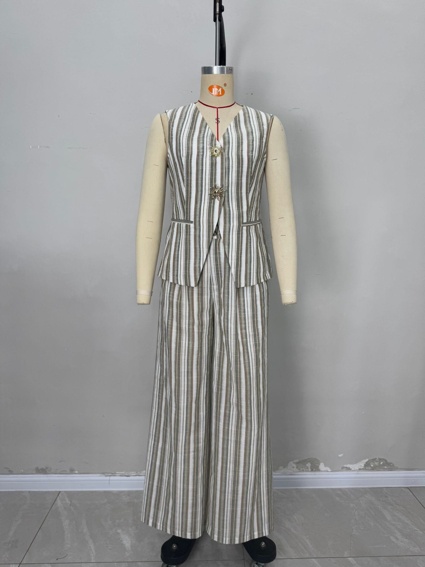 Yilu_High-quality striped sleeveless top and loose-fitting wide-leg pants set