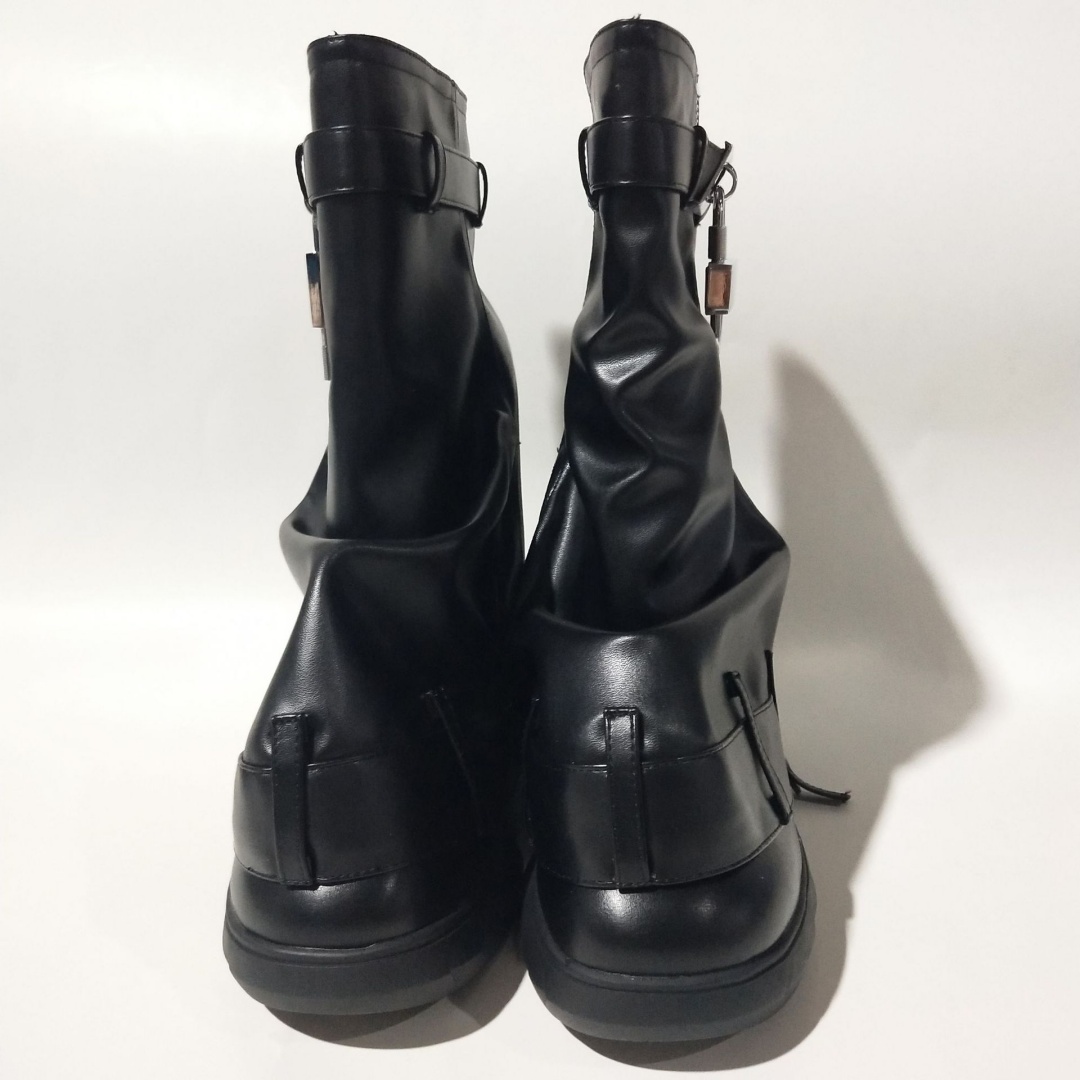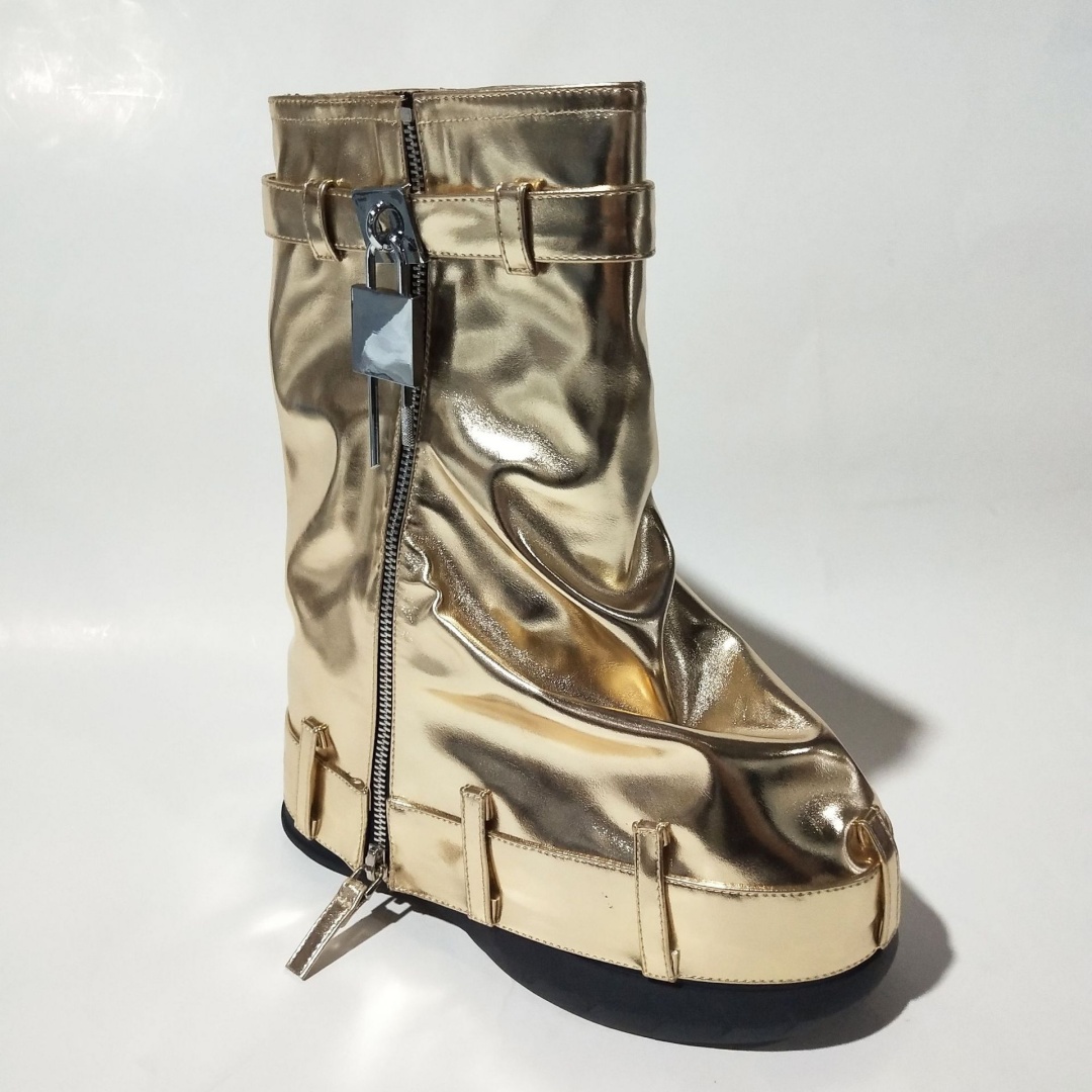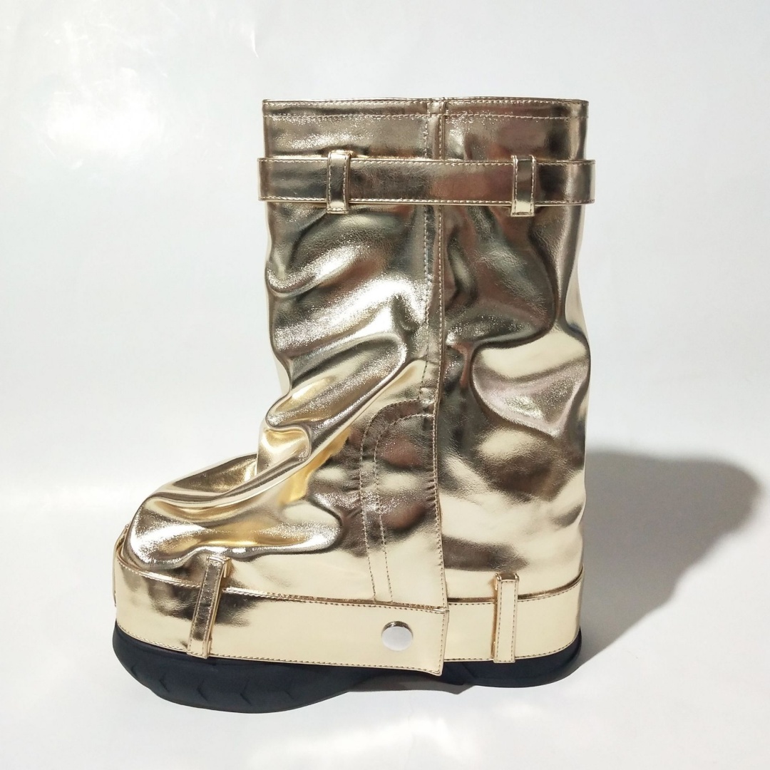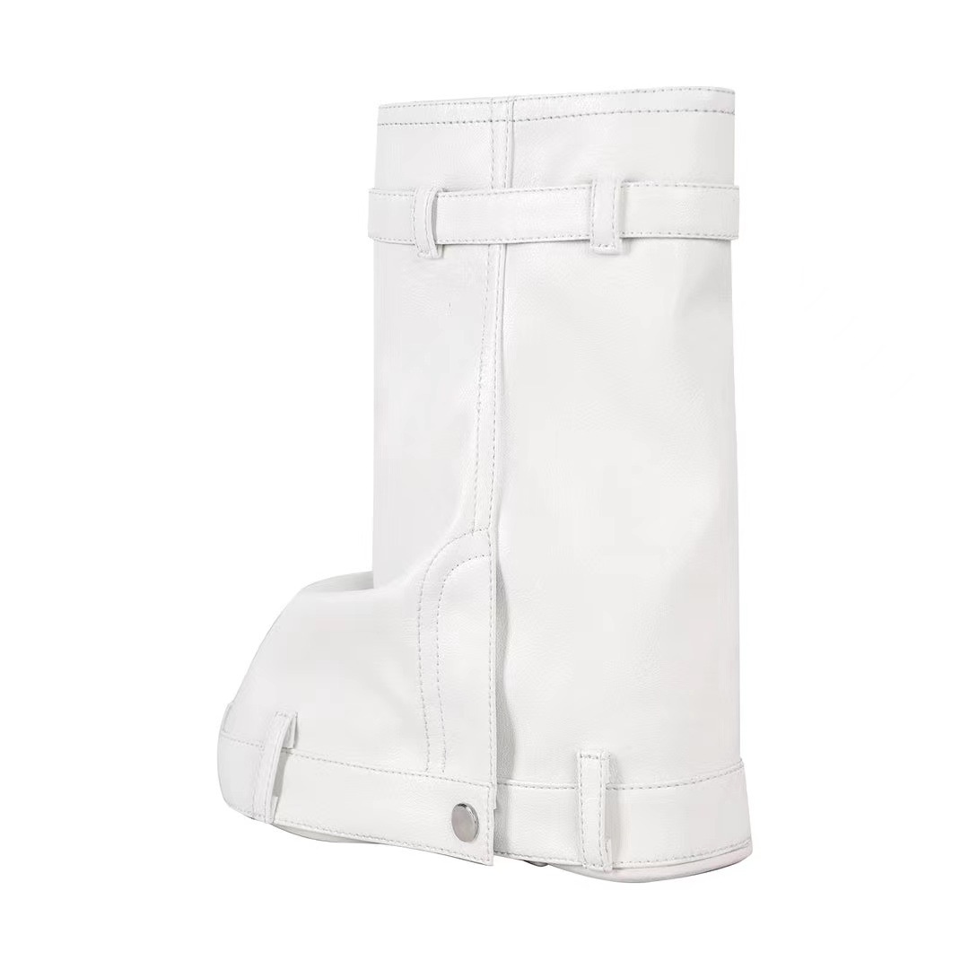 Yilu_High-quality thick-bottom shark-bone buckle pants, round-top women’s boots, large size, short sleeves, belt buckle, wedge heel women’s shoes