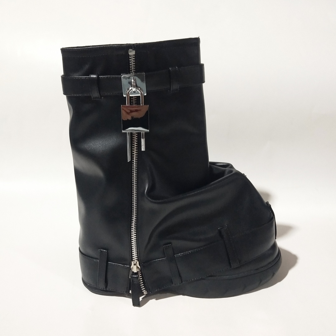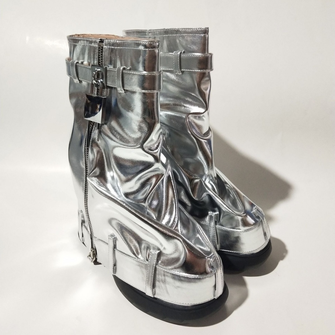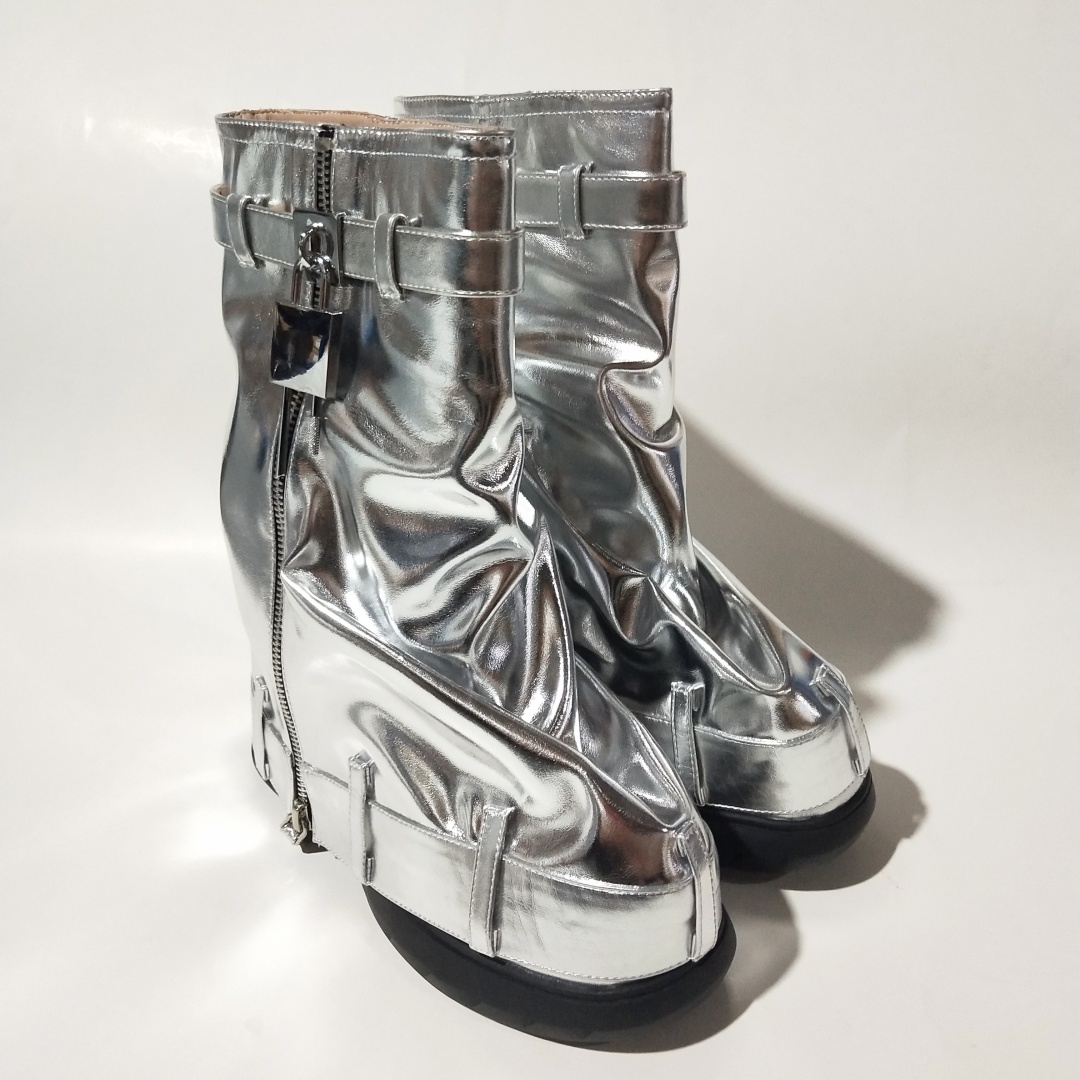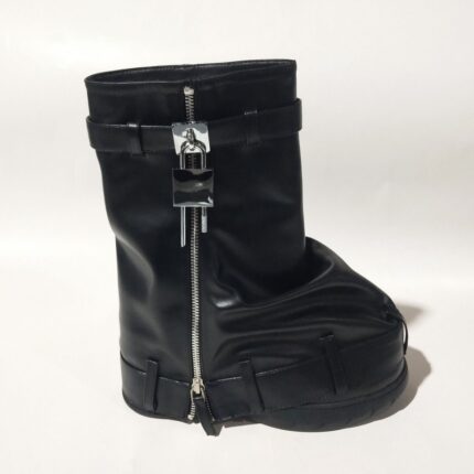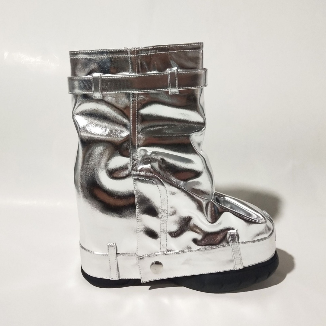 Yilu_High-quality thick-bottom shark-bone buckle pants, round-top women’s boots, large size, short sleeves, belt buckle, wedge heel women’s shoes