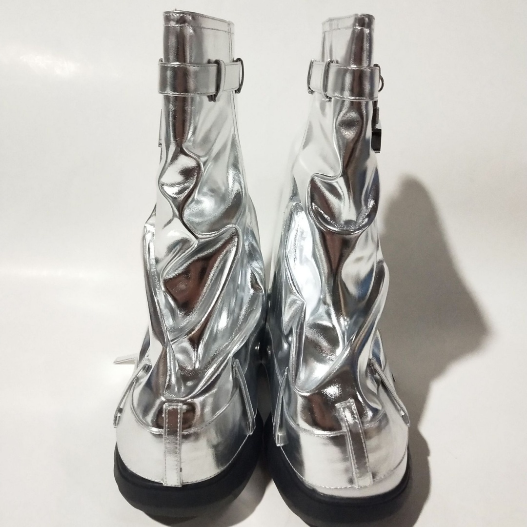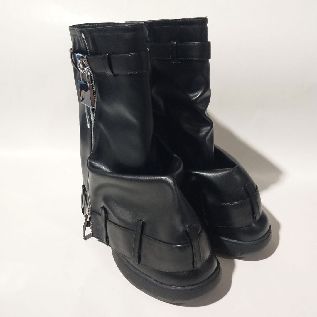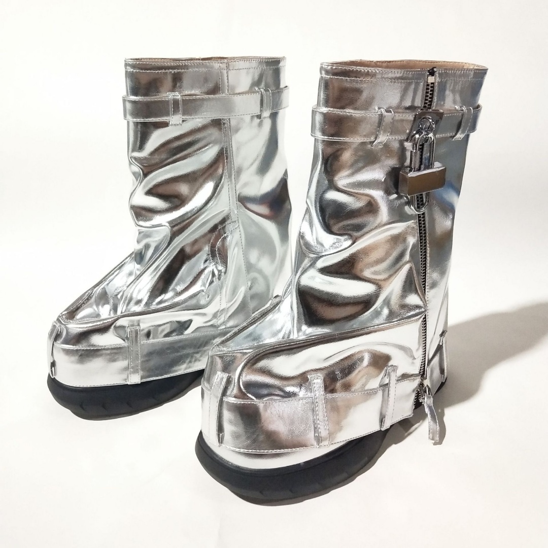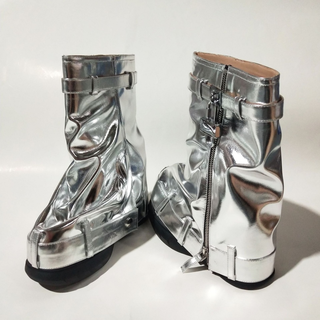 Yilu_High-quality thick-bottom shark-bone buckle pants, round-top women’s boots, large size, short sleeves, belt buckle, wedge heel women’s shoes