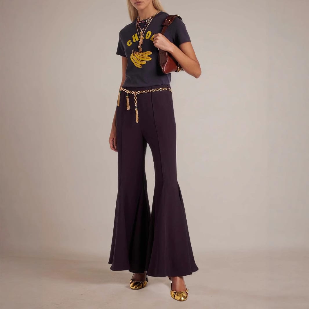 Yilu_High-quality trendy deep purple high-waisted flared pants