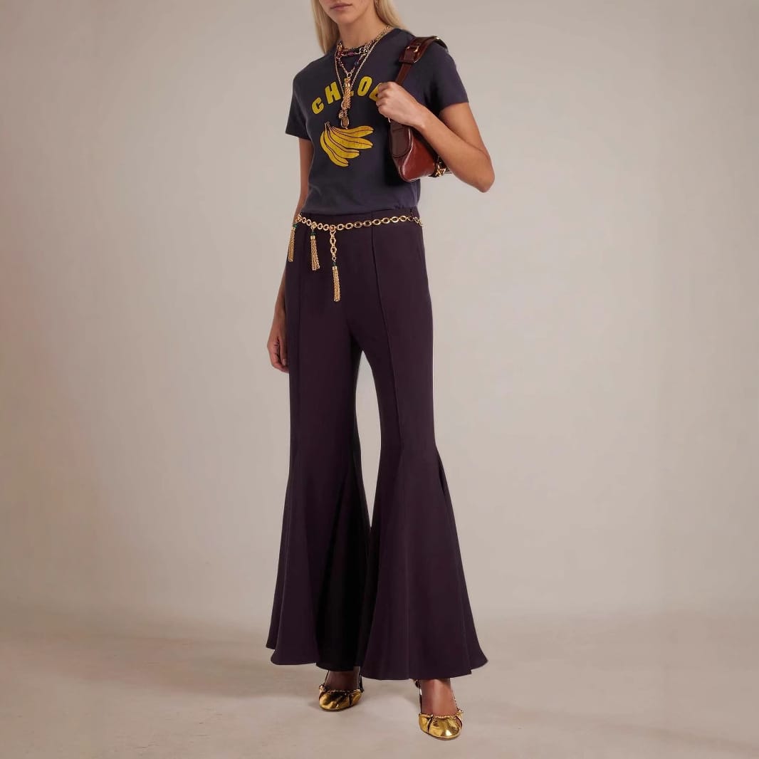 Yilu_High-quality trendy deep purple high-waisted flared pants