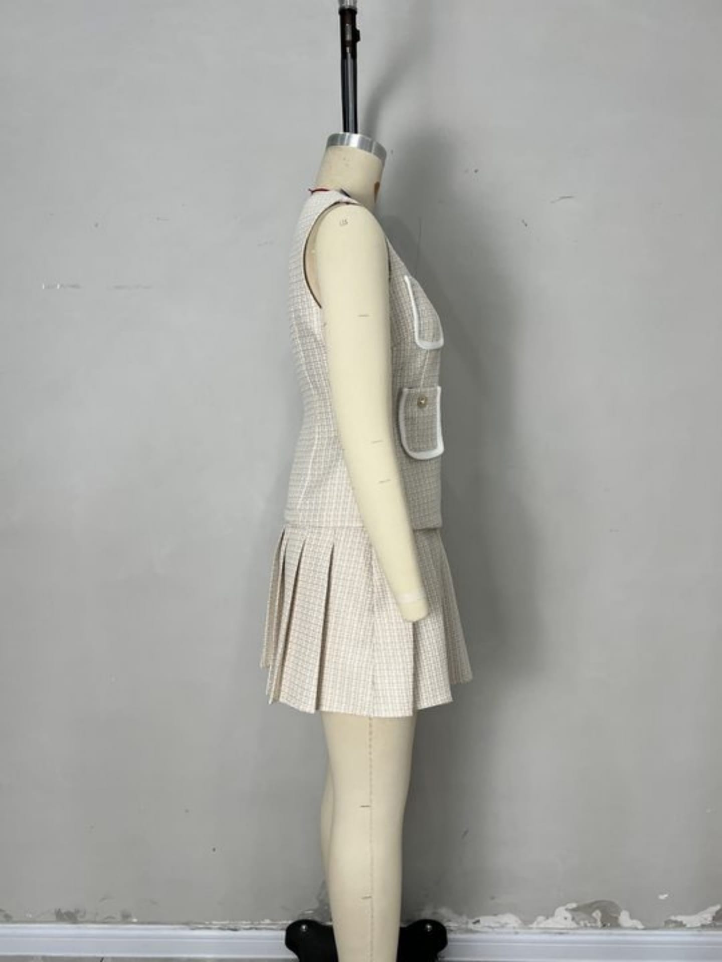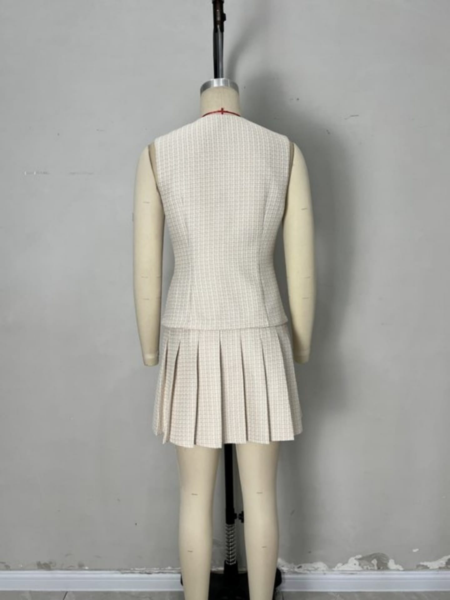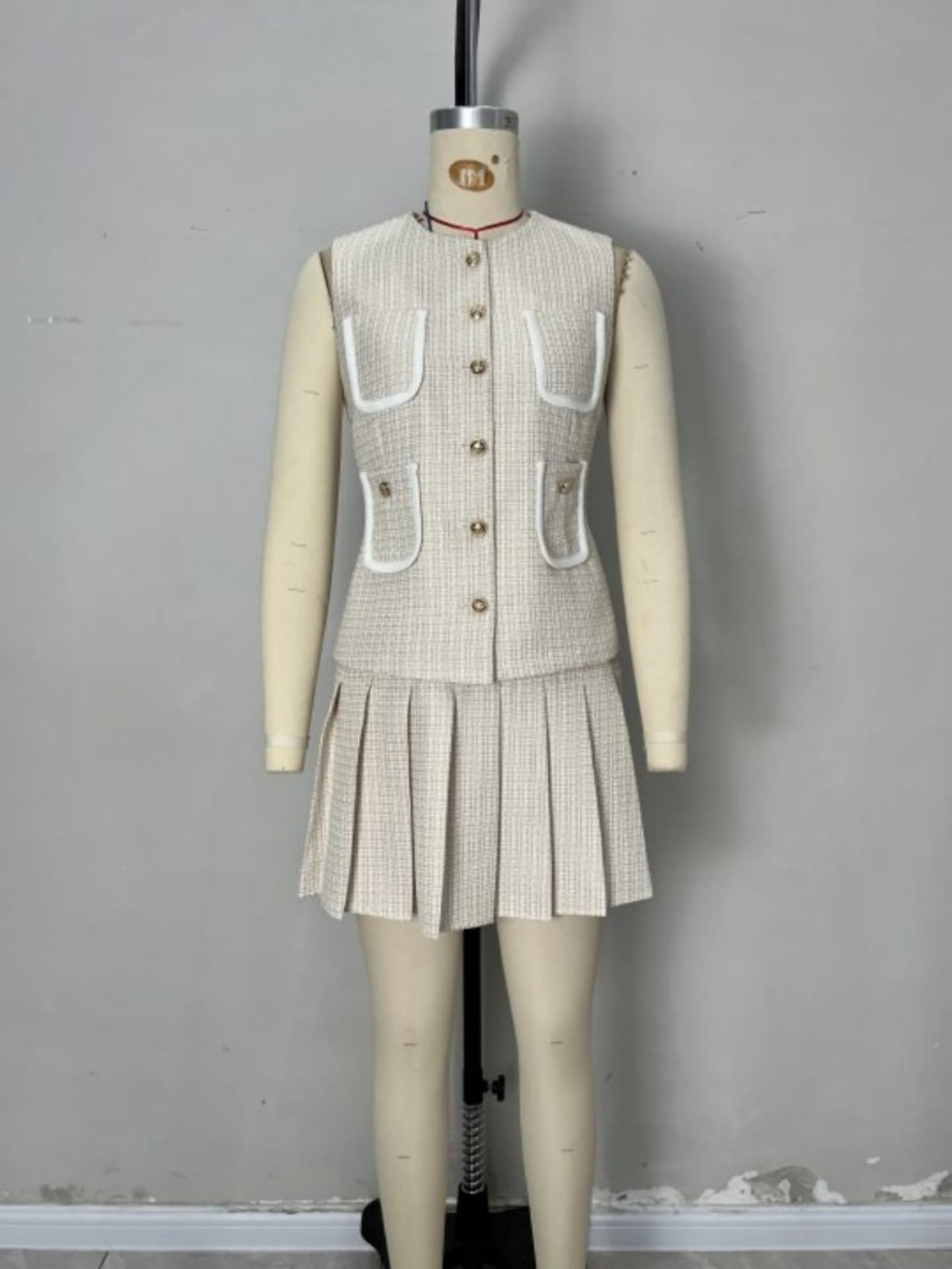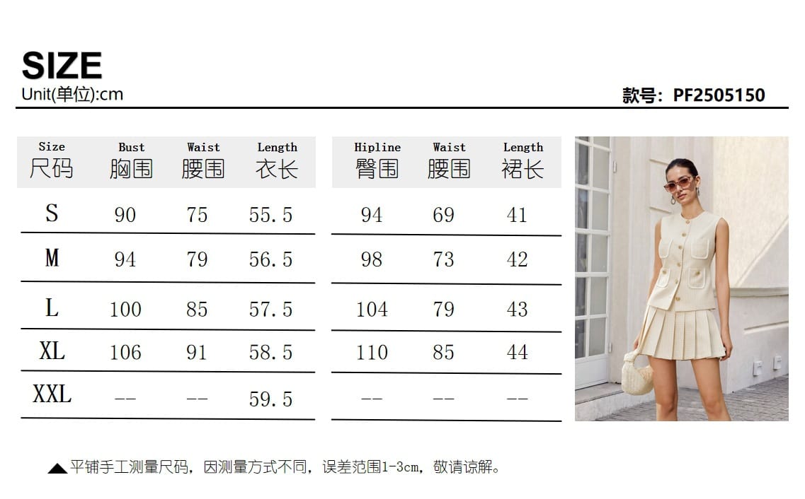 Yilu_High-quality versatile sleeveless jacket and pleated half-length skirt set