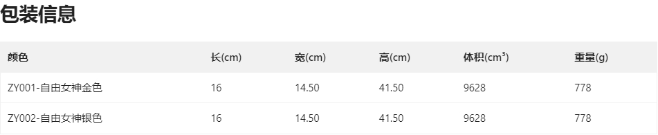 ZY001-自由女神金色 ,ZY002-自由女神银色 |