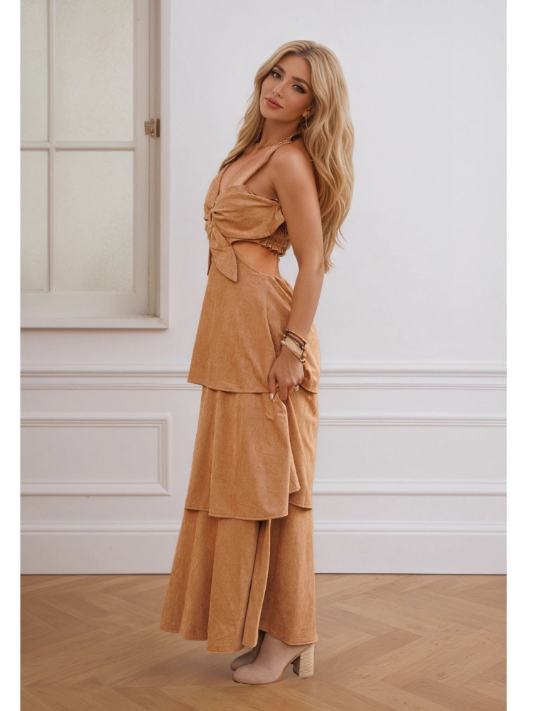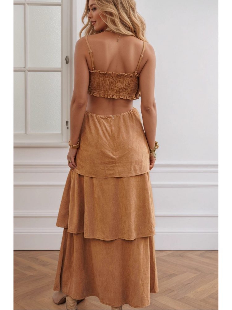Yilu_High-quality elegant style retro fashion halter top with openwork design for slimming effect, long dress