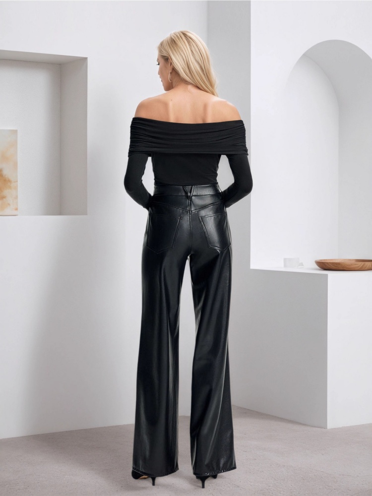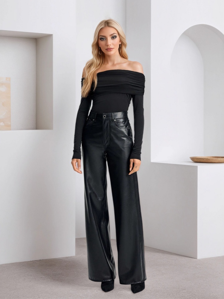 Yilu_High-quality fashionable high-waisted wide-leg leather pants for women in autumn and winter, with loose and comfortable fit, suitable for casual and relaxed wear, and great for slimming effect. Perfect for various occasions.