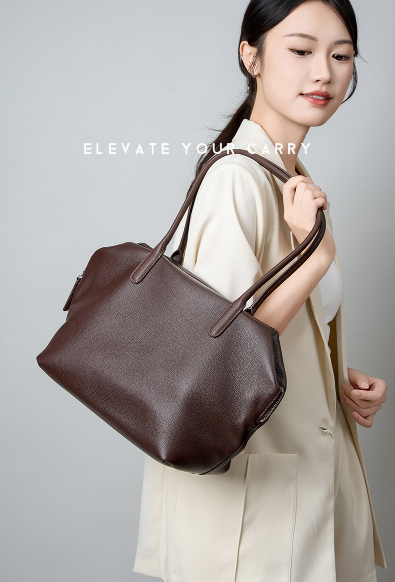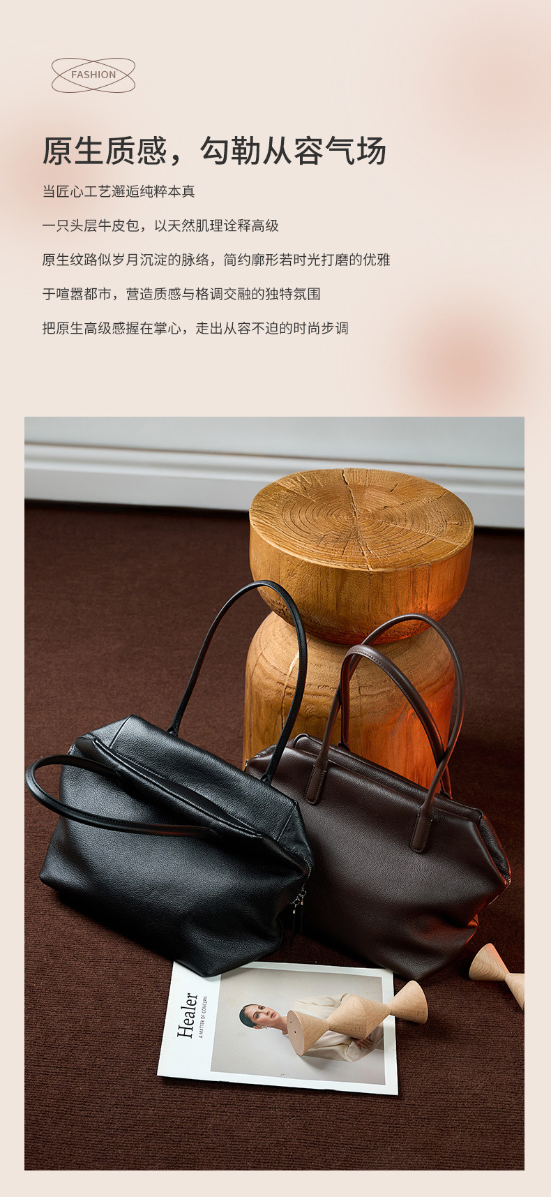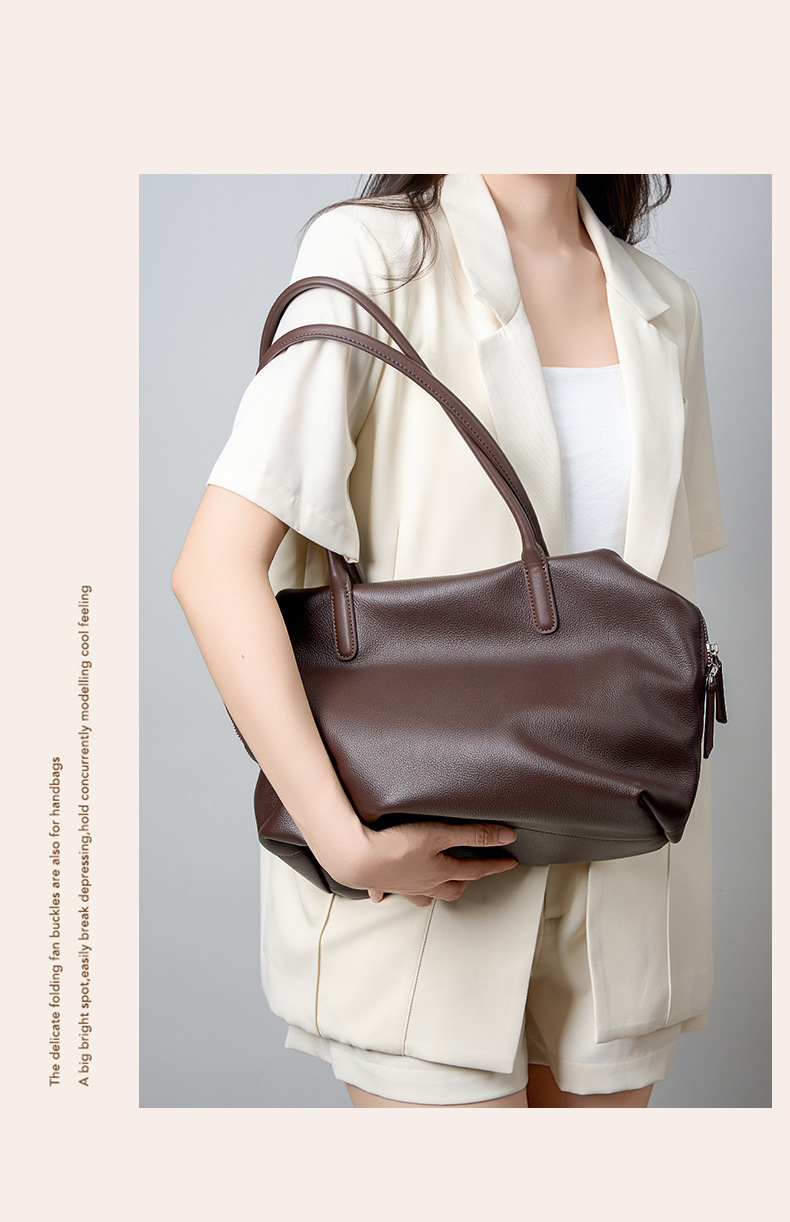 Yilu_High-quality top-grade cowhide large capacity hand-held shoulder bag, fashionable bag, women’s cross-body leather handbag