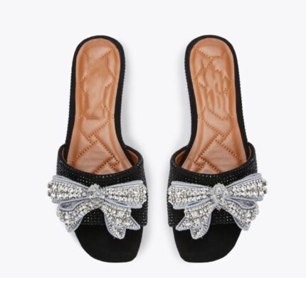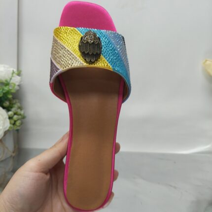Yilu_High-quality interlayer round-toothed fish-mouth back-toe metallic color patchwork with rhinestone pattern flat-bottomed slip-on women’s shoes