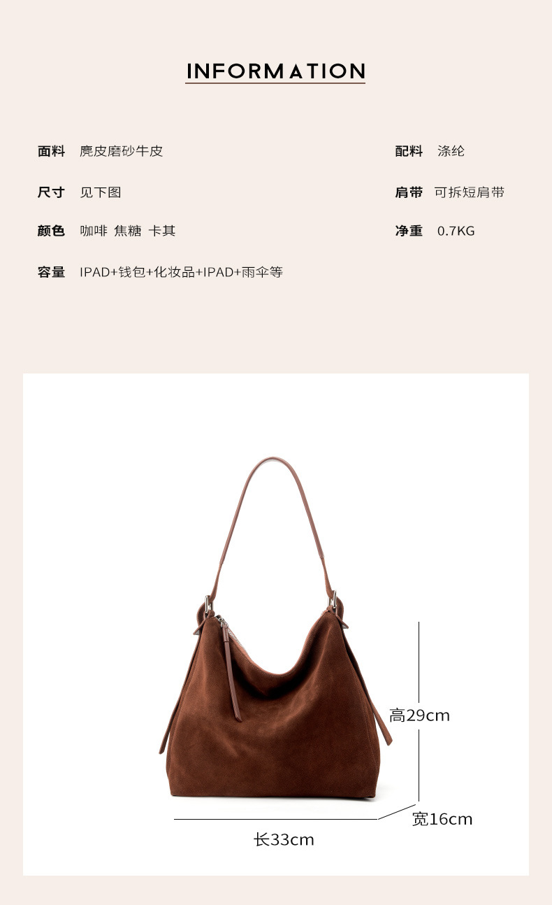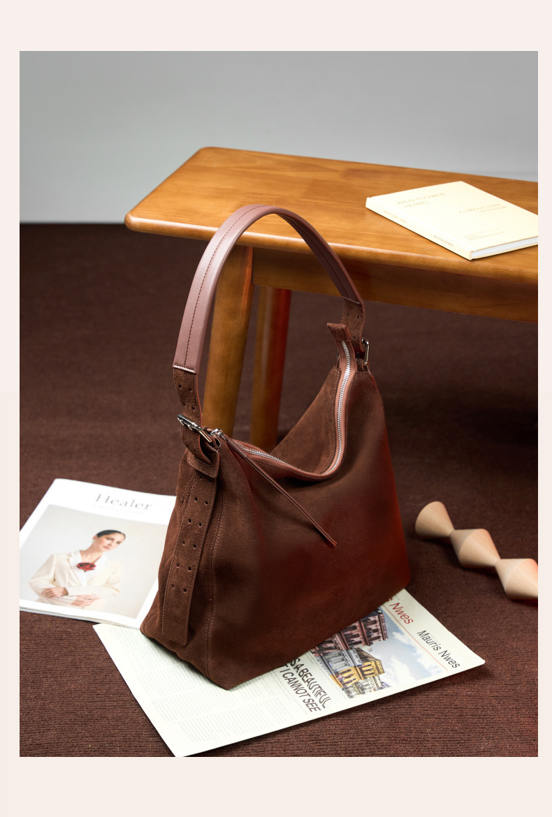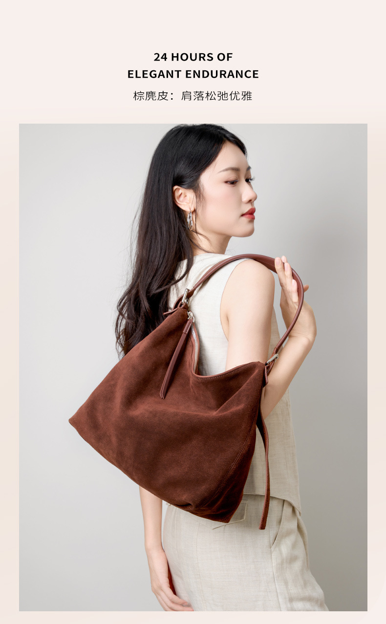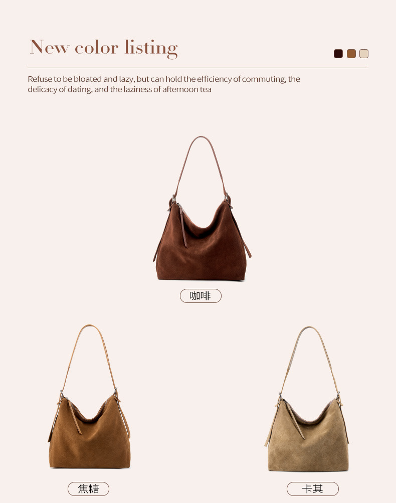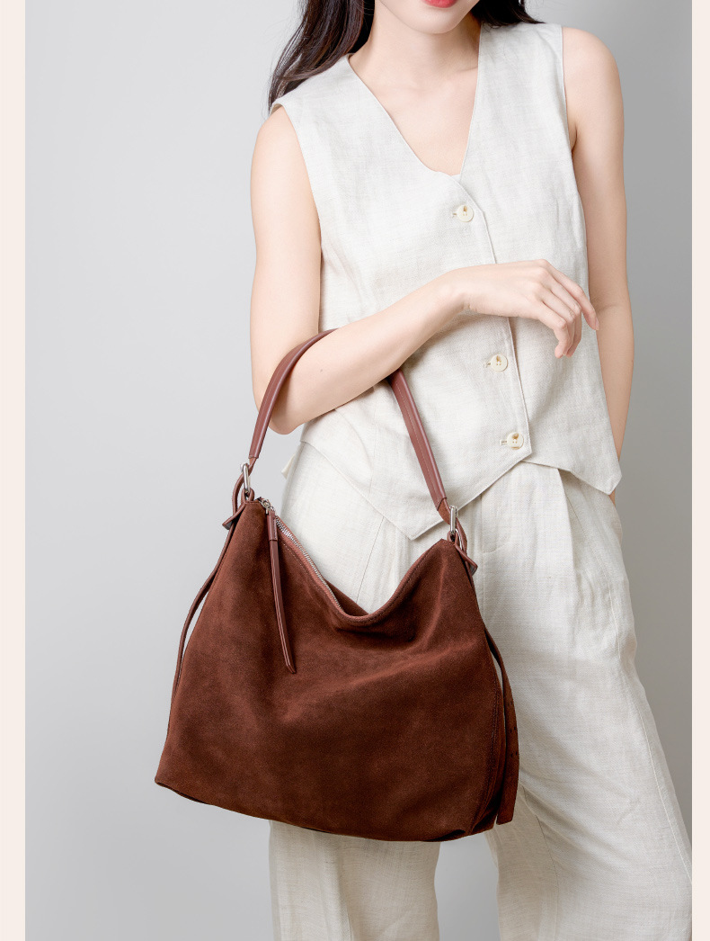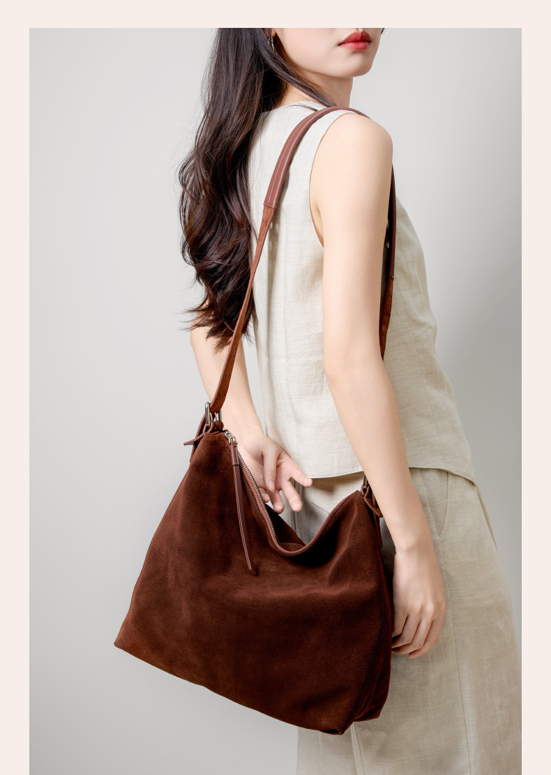 Yilu_High-quality suede crossbody large-capacity women’s luxury casual commuter premium style single-shoulder bag casual underarm top-grain cowhide tote bag