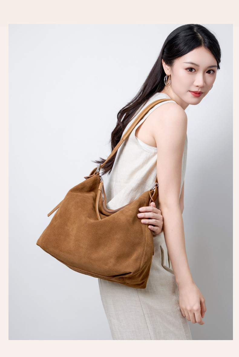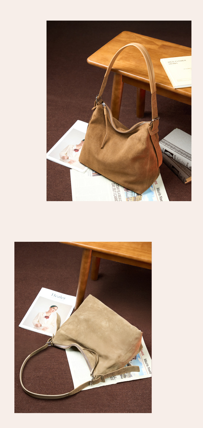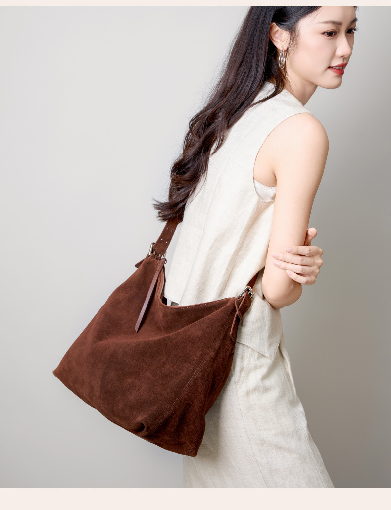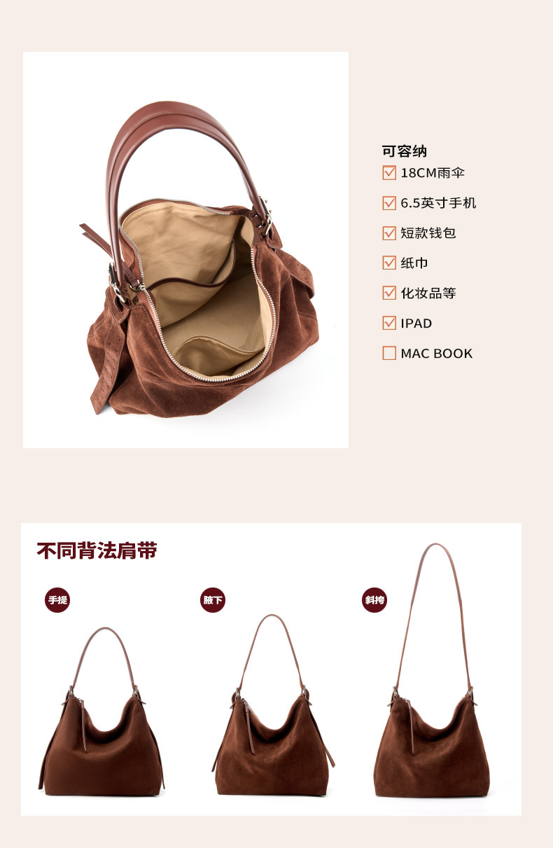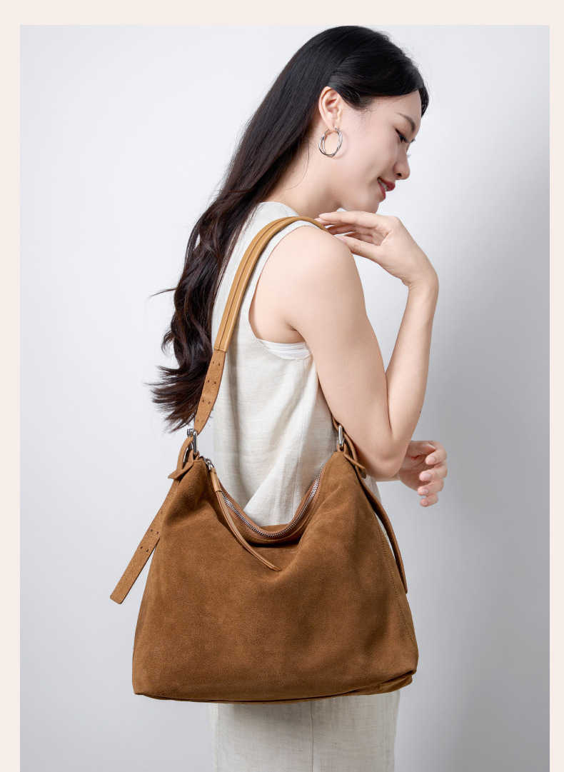 Yilu_High-quality suede crossbody large-capacity women’s luxury casual commuter premium style single-shoulder bag casual underarm top-grain cowhide tote bag