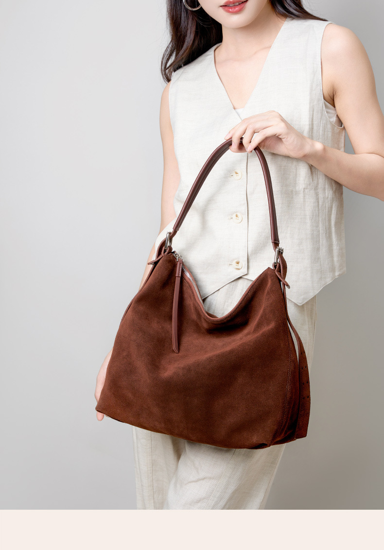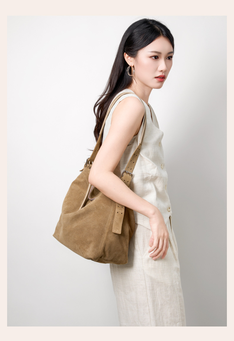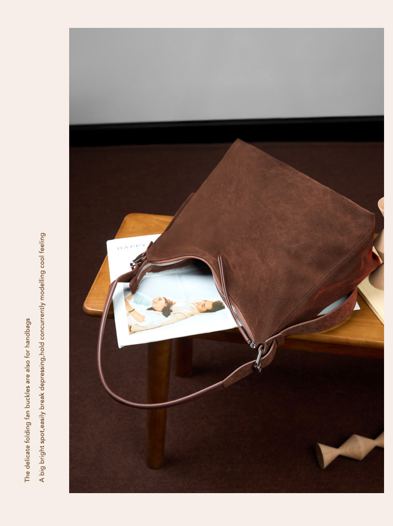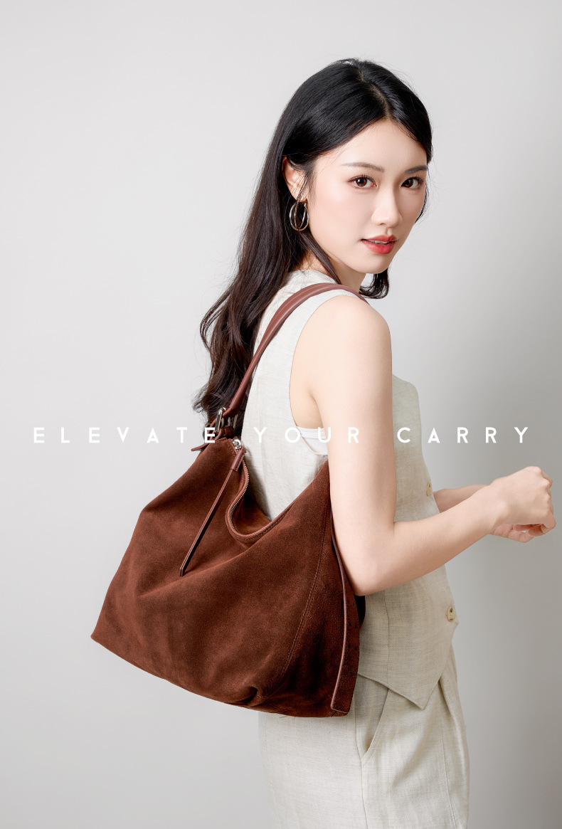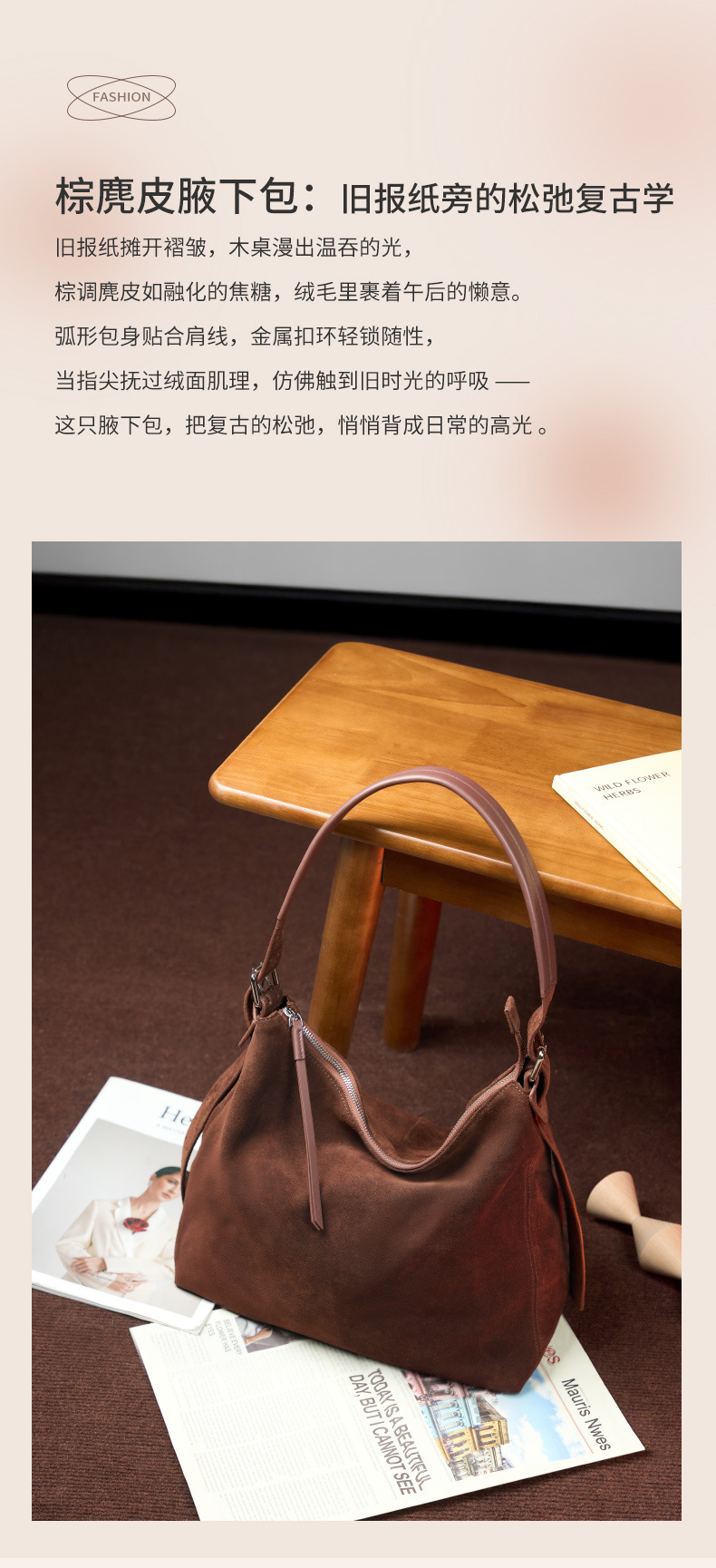Yilu_High-quality suede crossbody large-capacity women’s luxury casual commuter premium style single-shoulder bag casual underarm top-grain cowhide tote bag