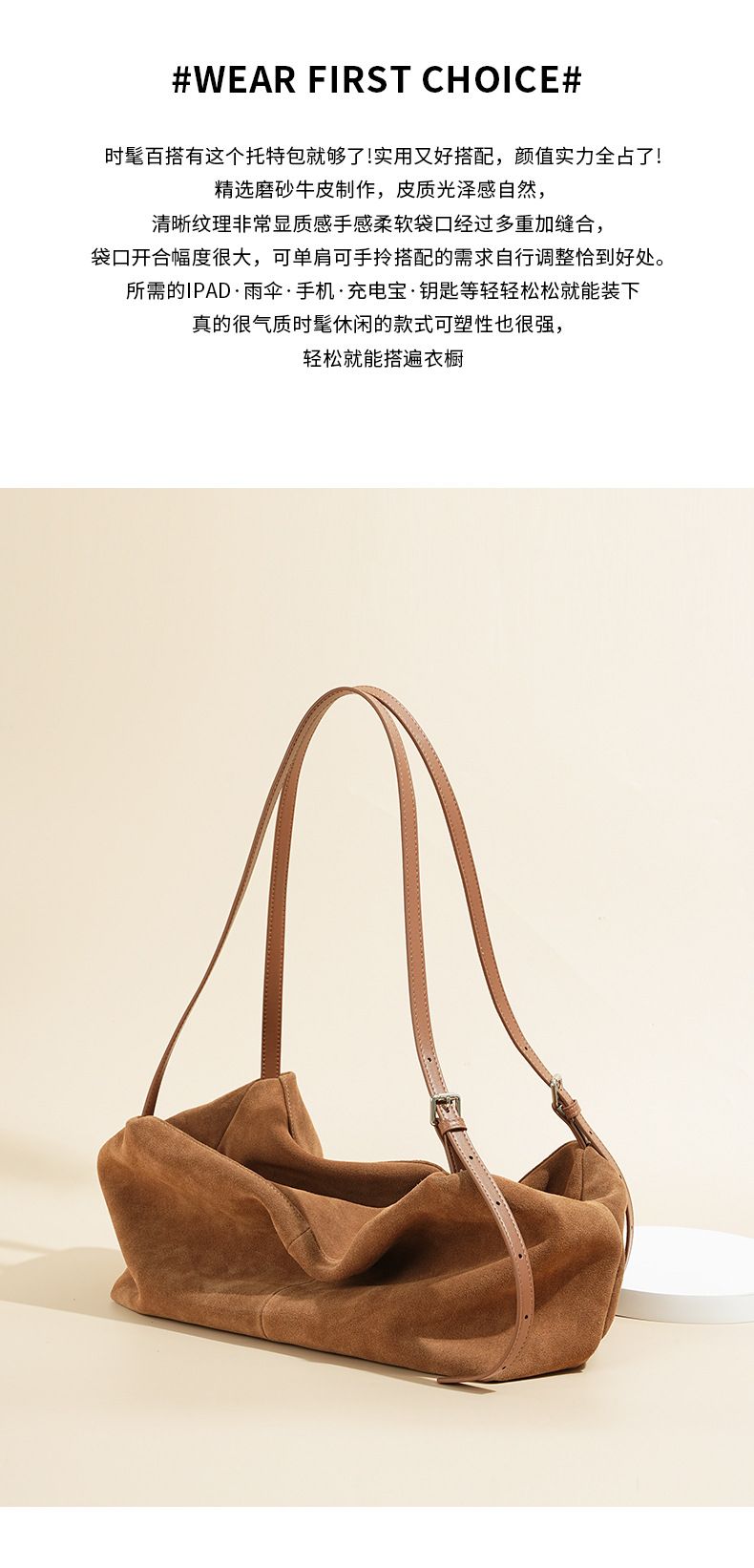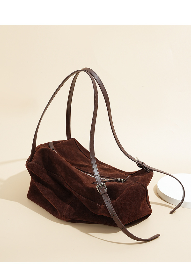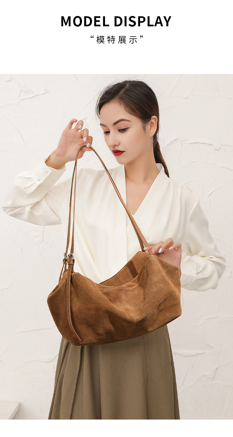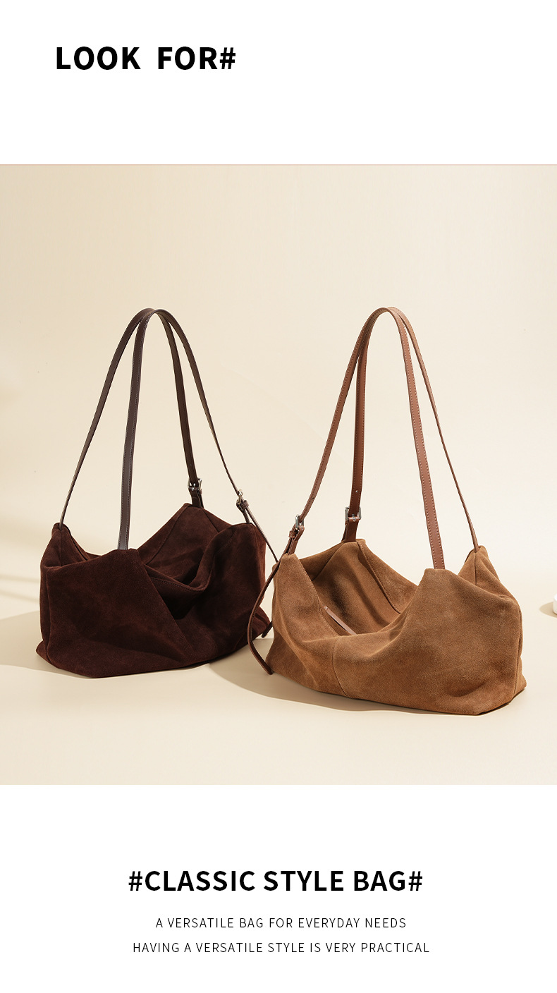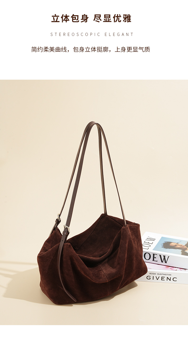 Yilu_High-quality women’s handbag – A niche yet versatile casual tote made of exclusive suede. Smooth-grained cowhide large-capacity crossbody bag with an underarm pillow feature.