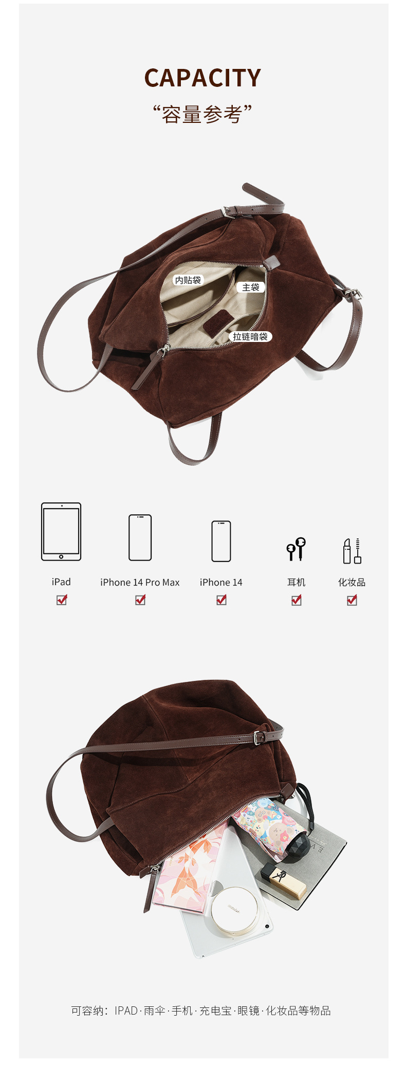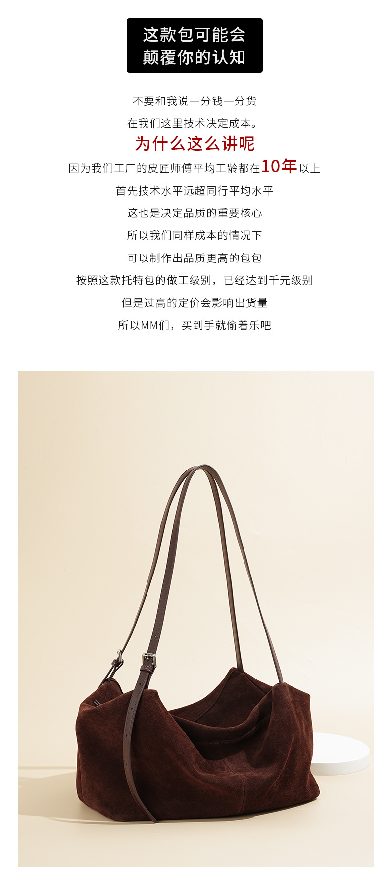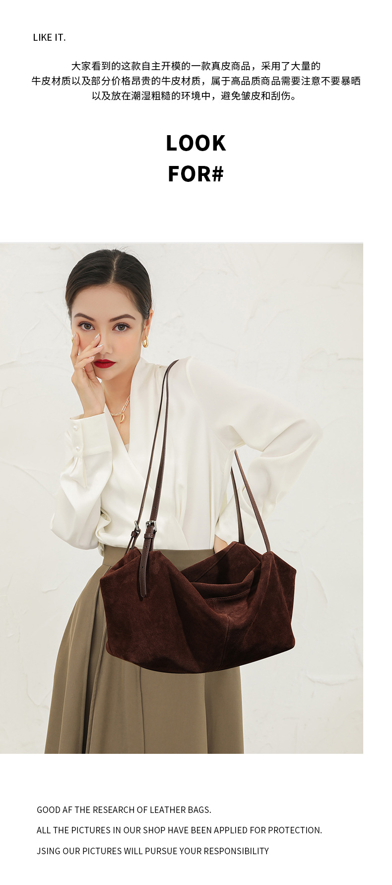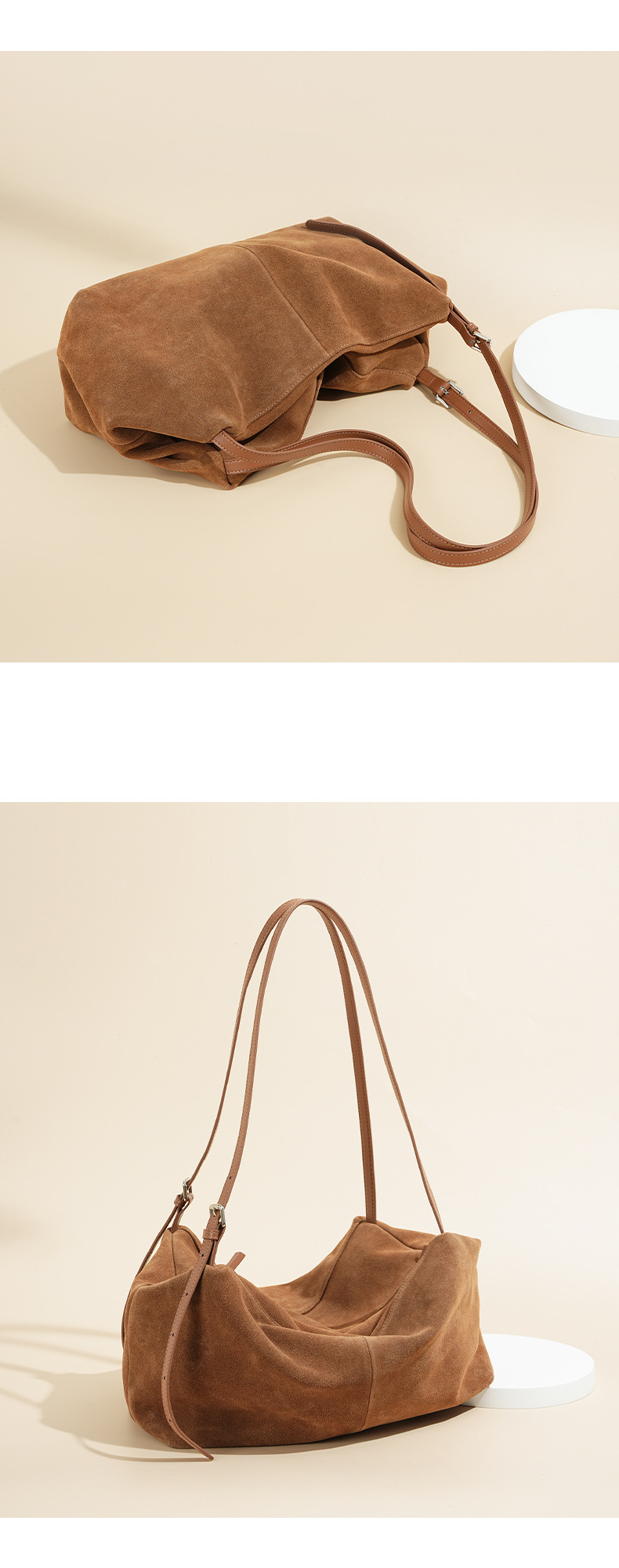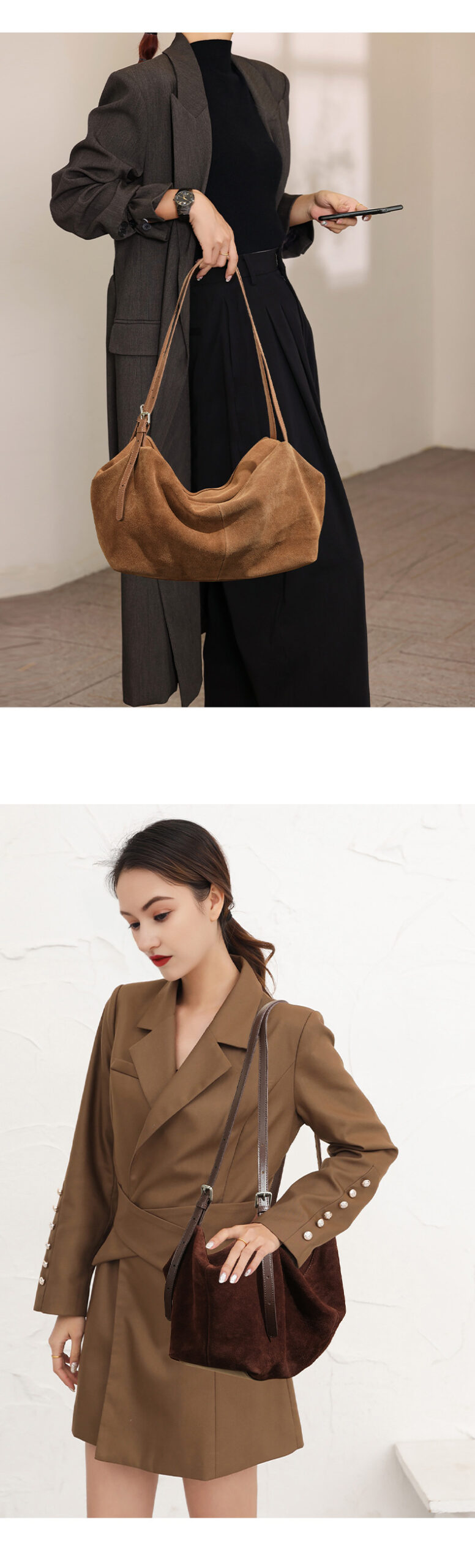 Yilu_High-quality women’s handbag – A niche yet versatile casual tote made of exclusive suede. Smooth-grained cowhide large-capacity crossbody bag with an underarm pillow feature.