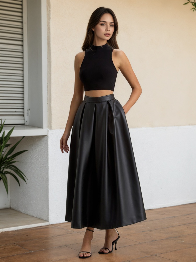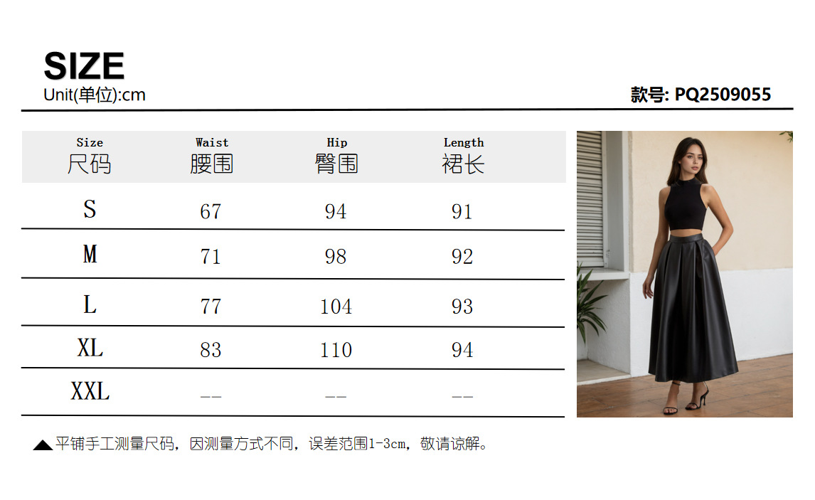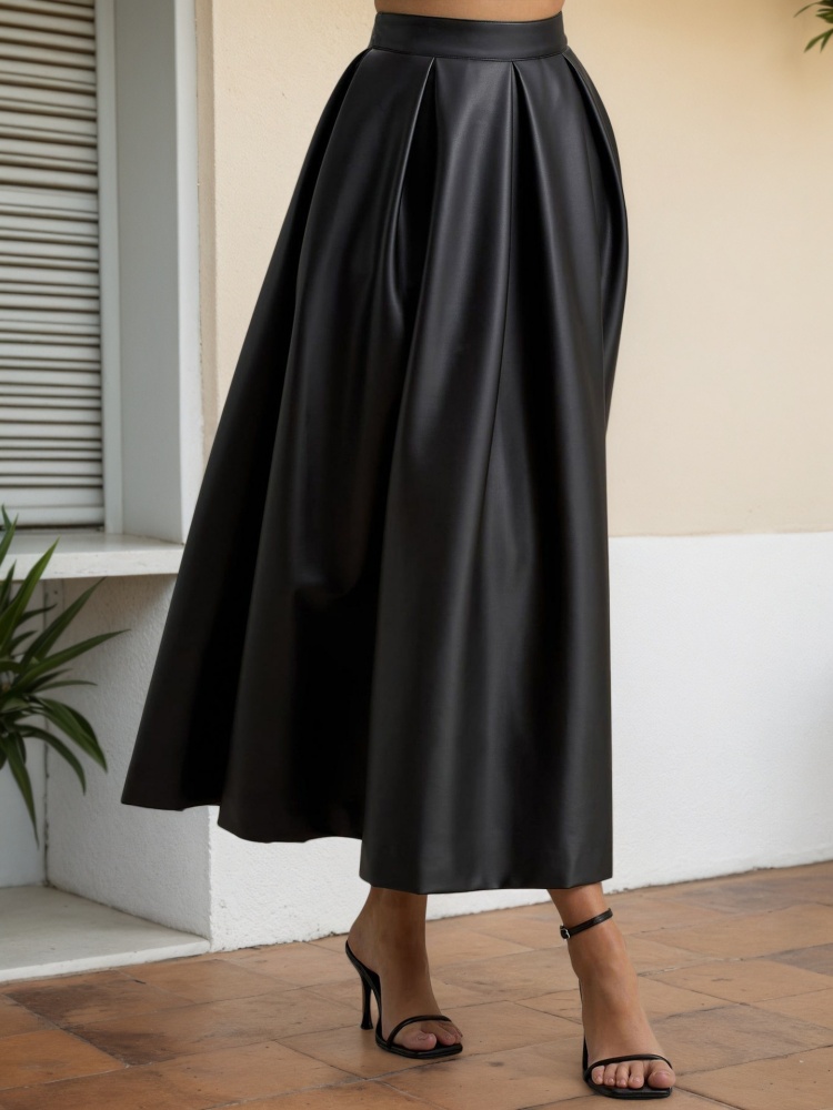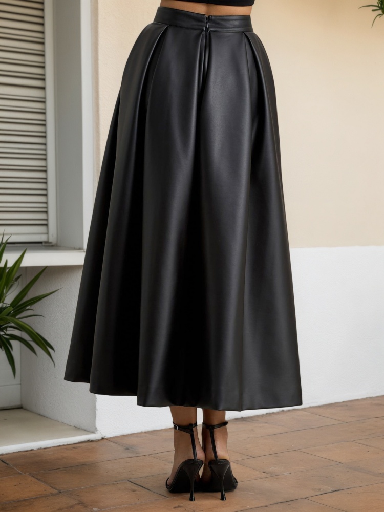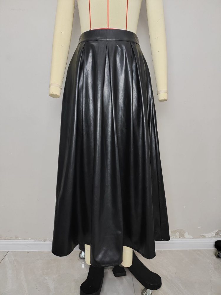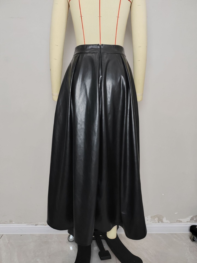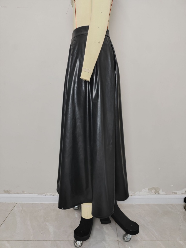 Yilu_High-quality women’s spring-autumn new high-waisted business casual umbrella skirt with PU leather design – versatile and easy to match – A-line half-length skirt